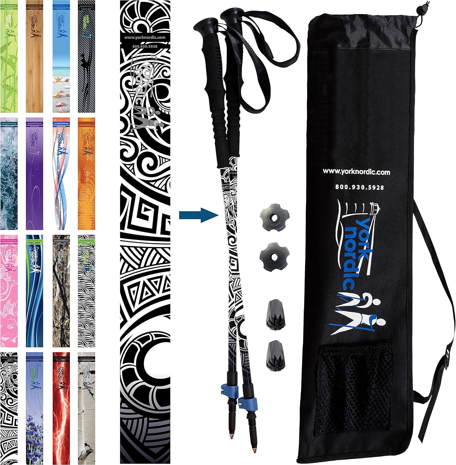 York Nordic Hiking & Walking Poles - Cushion Foam Grips w/Nordic Strap - Lightweight, Adjustable, and Great for Balance -2 Pieces w/Flip Locks, and Travel Bag - Heights 5'4"-6'2"