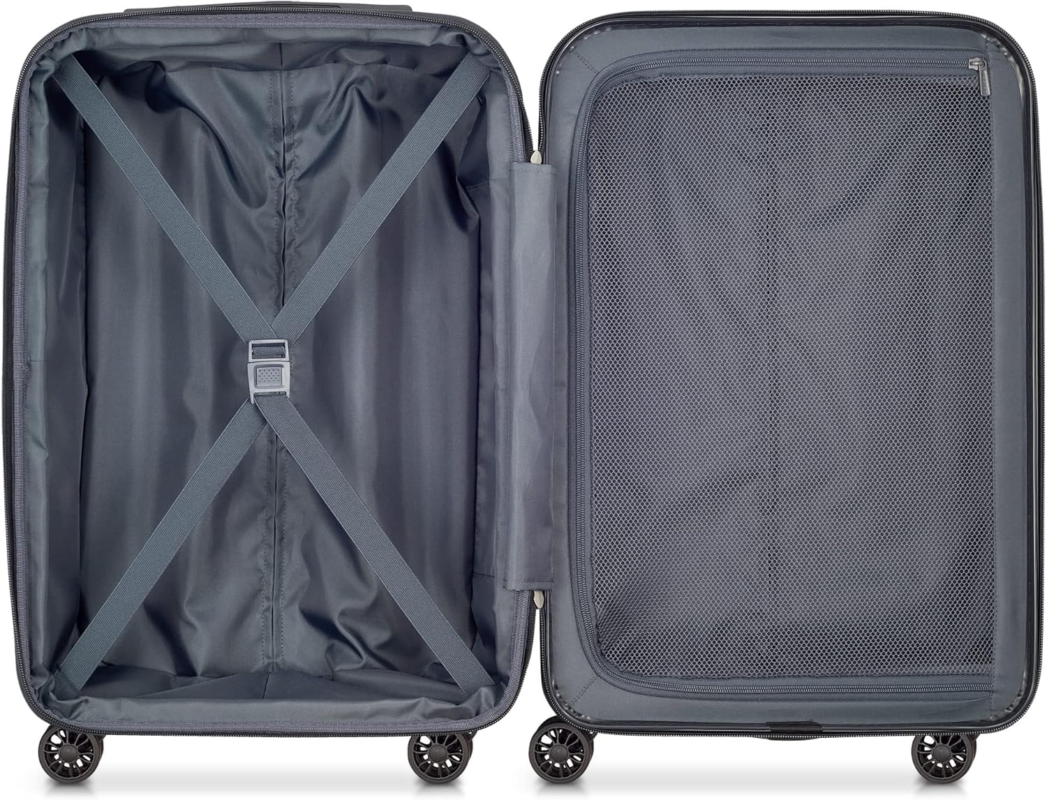 - Four spinner wheels assuring a stable base with multi-directional rolling with zero weight on your hand for easy travel