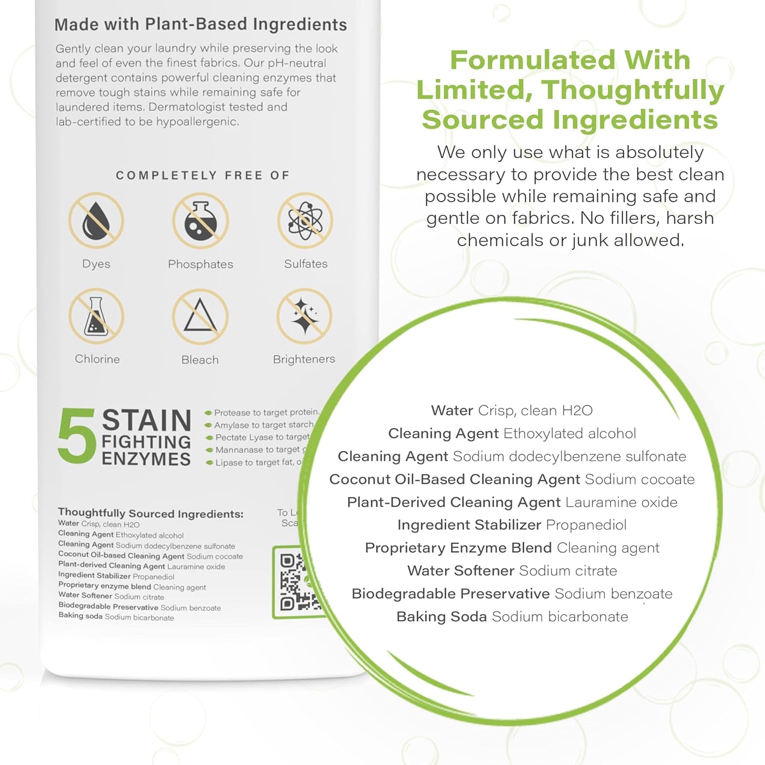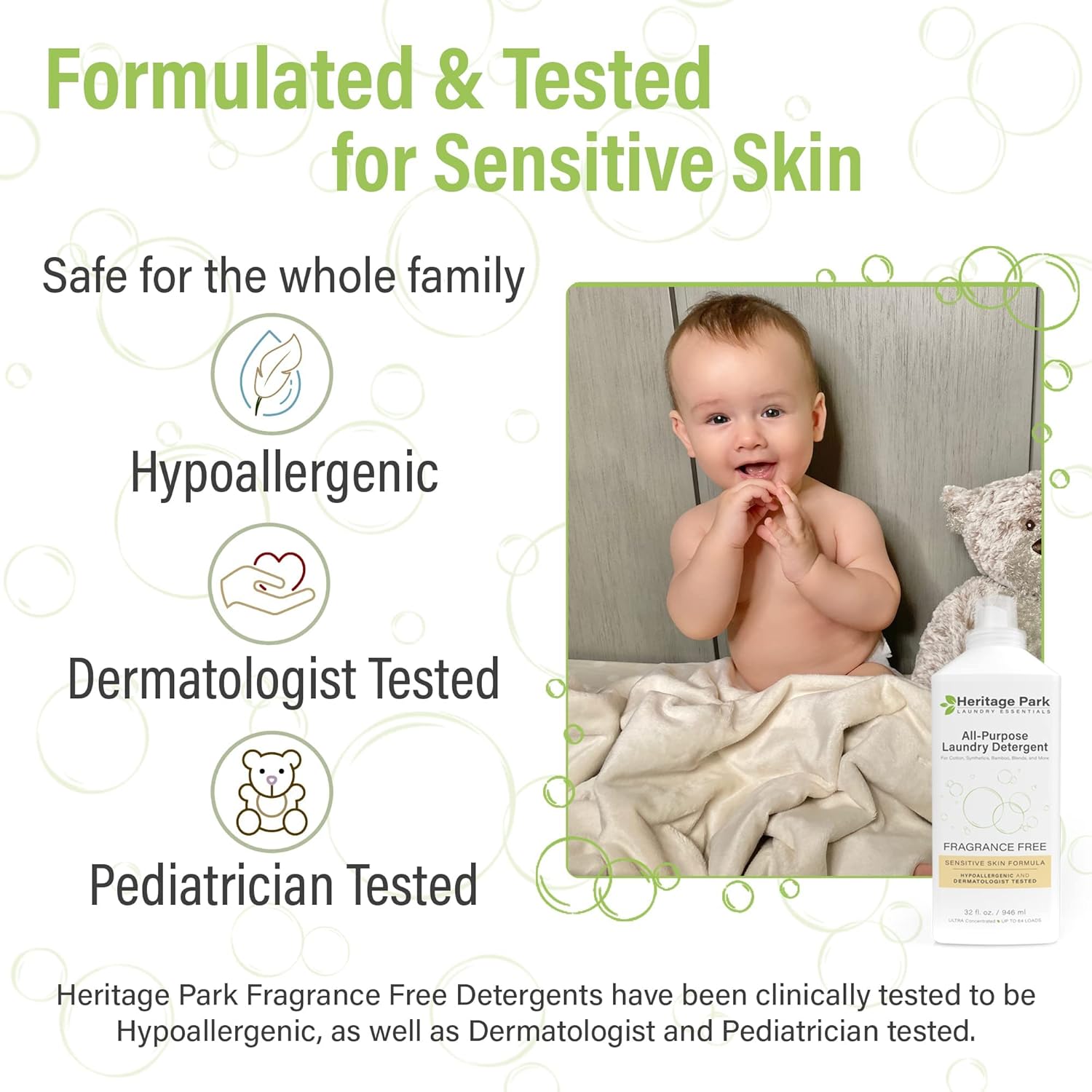 Heritage Park Luxury Laundry Detergent | Dermatologist Tested Plant based Natural & Enzyme Laundry Detergent | Sensitive Skin Friendly - Fragrance Free (64 fl oz)