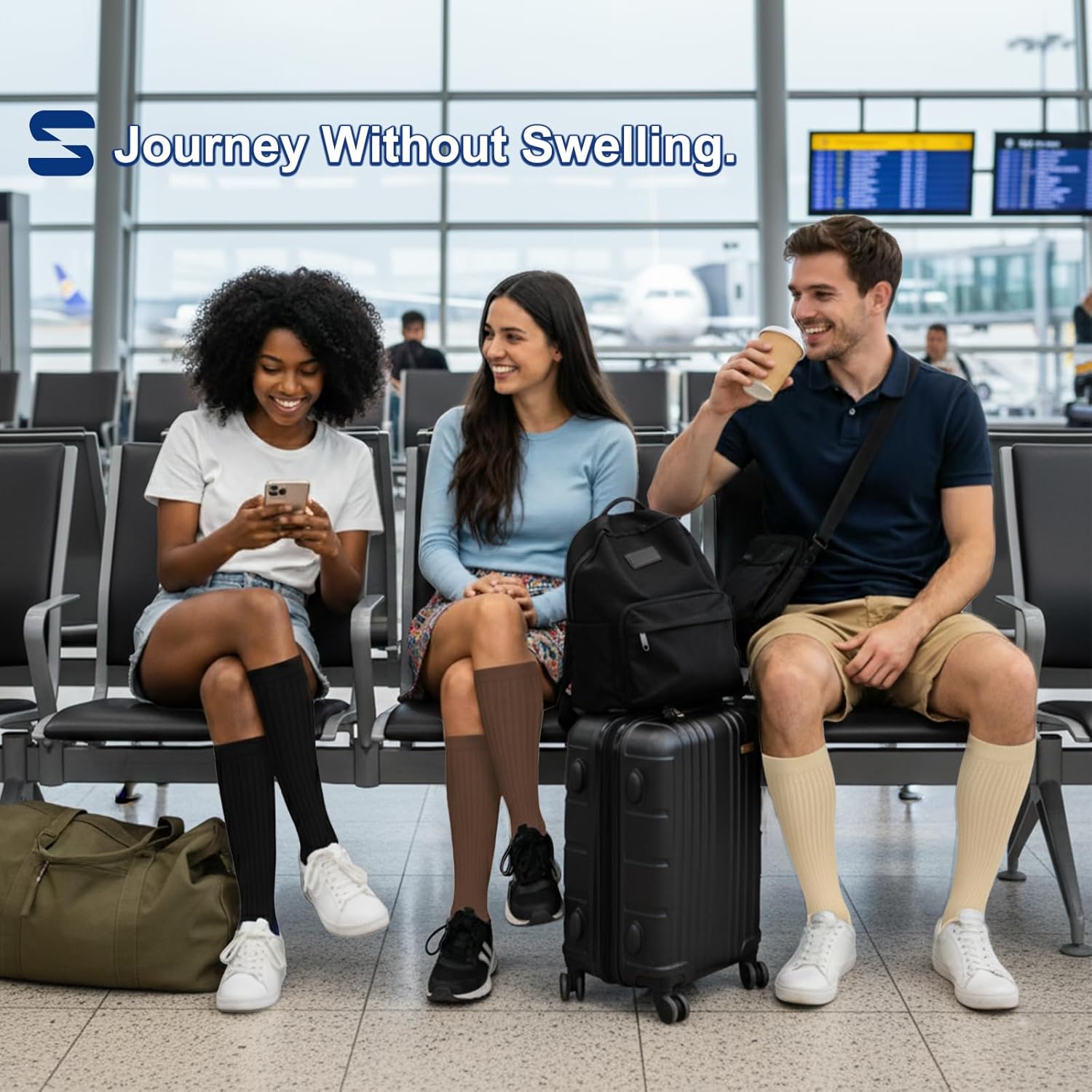 - Comfortable Design - Sooverki graduated compression socks for women and men circulation provide 15-20 mmHg of gradient compression, which are ergonomically designed. Prevention and relief of minor varicose veins, relief of tired aching legs, relief of minor swelling of feet and legs. The inner design of the socks is very soft and friendly to the toes. The material is breathable and comfortable, which can keep your feet dry.