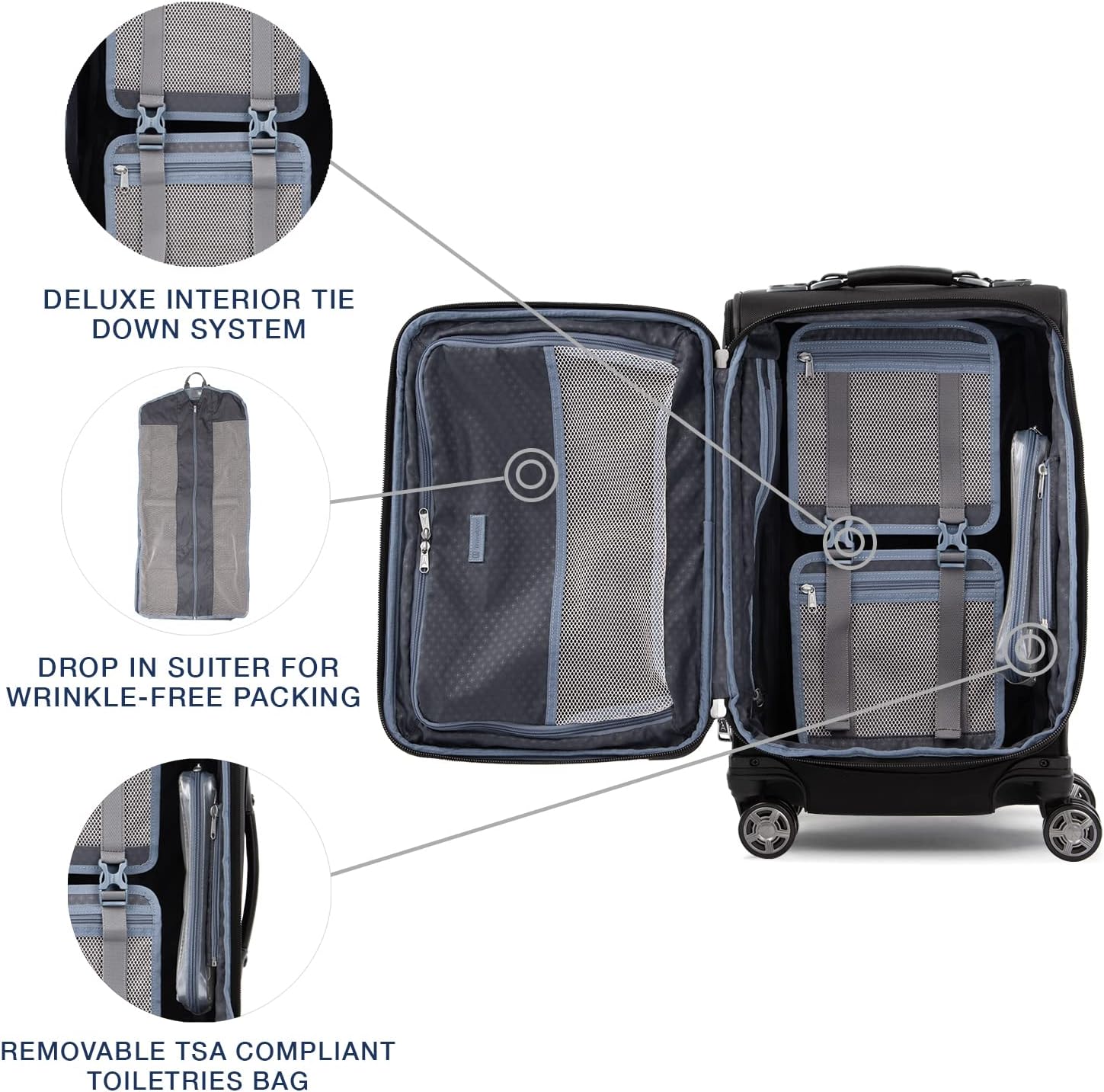Travelpro Platinum Elite Softside Expandable Carry on Luggage, 8 Wheel Spinner Suitcase, USB Port, Suiter, Men and Women, Shadow Black, Carry On 21-Inch
