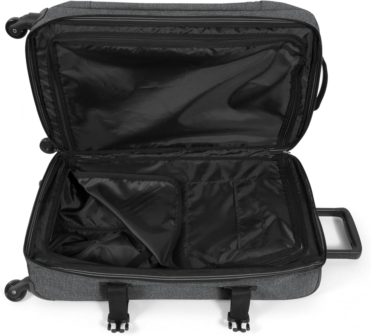 EASTPAK Trans4 S – 44L Large Wheeled Luggage with Dual Compartments, TSA Lock, 360° Spinner Wheels, and Diamond-Embossed Handle, Black Denim