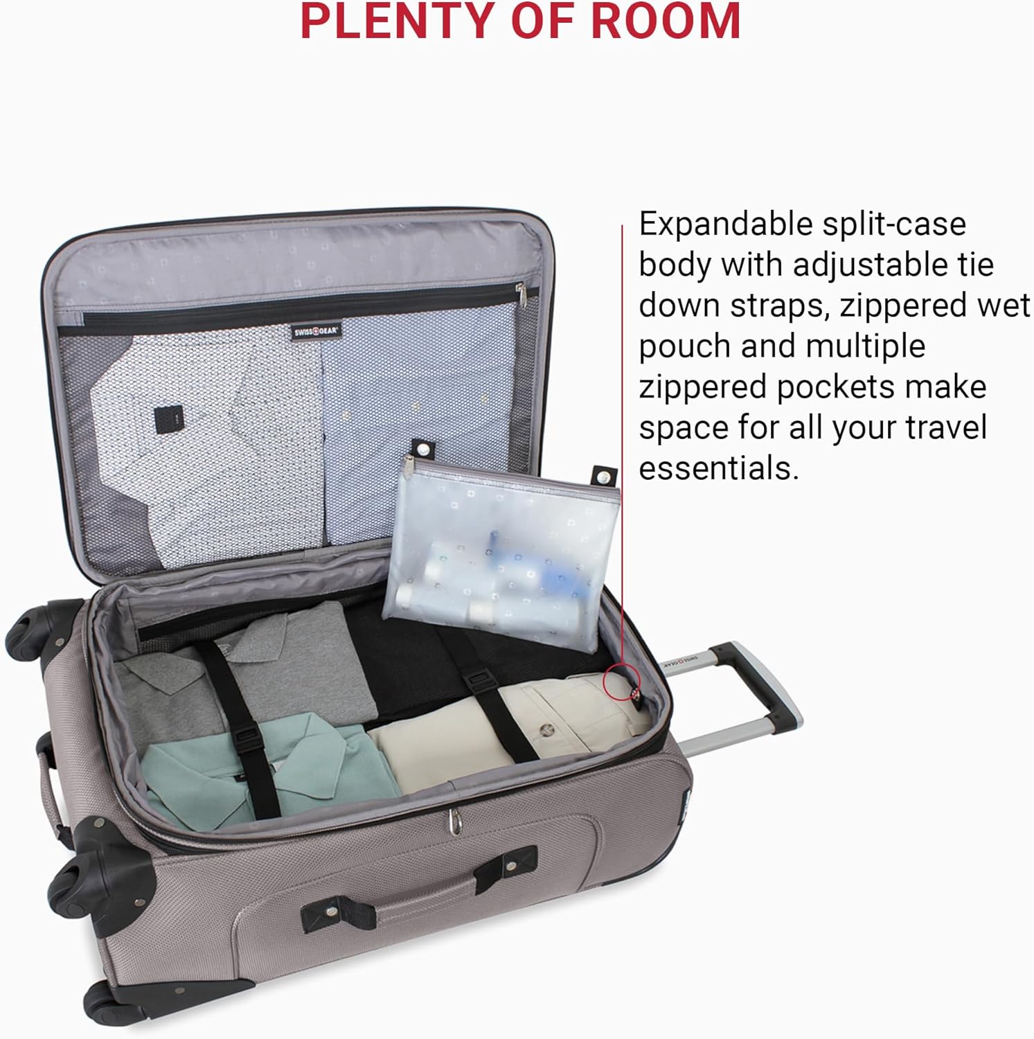 SwissGear Sion Softside Expandable Luggage, Pewter, Checked-Medium 25-Inch