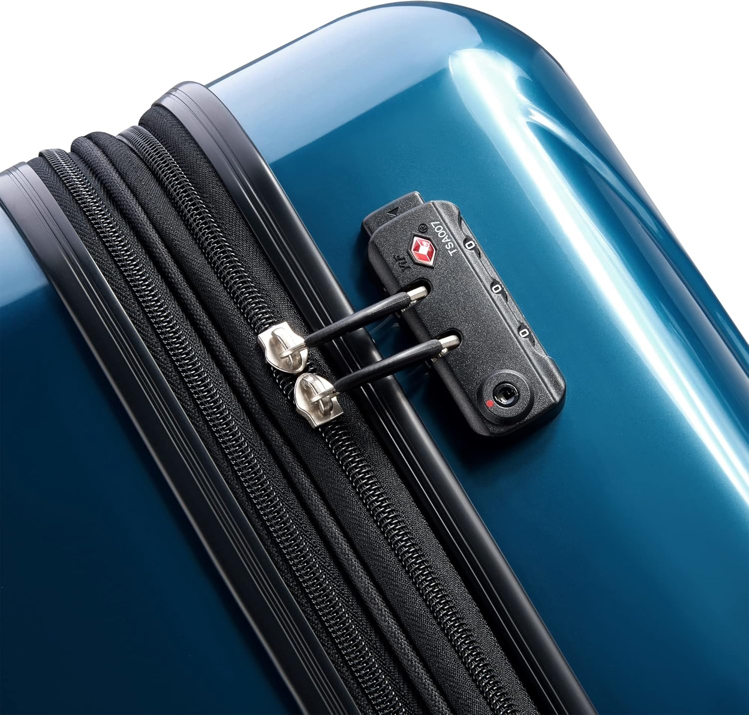 - Integrated 3-dial TSA approved combination lock for security; suitcase expands up to 2 inches for additional packing space