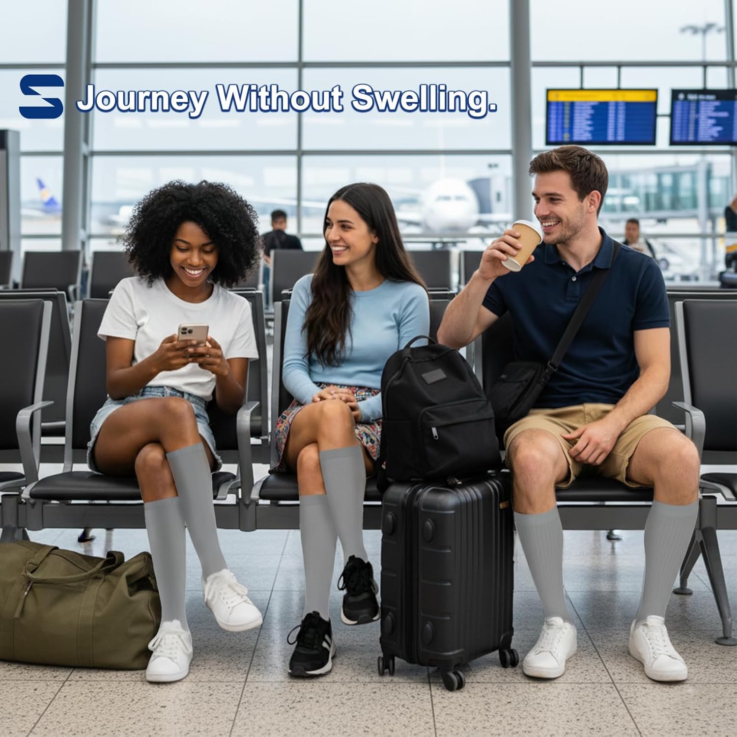 - Comfortable Design - Sooverki graduated compression socks for women and men circulation provide 15-20 mmHg of gradient compression, which are ergonomically designed. Prevention and relief of minor varicose veins, relief of tired aching legs, relief of minor swelling of feet and legs. The inner design of the socks is very soft and friendly to the toes. The material is breathable and comfortable, which can keep your feet dry.