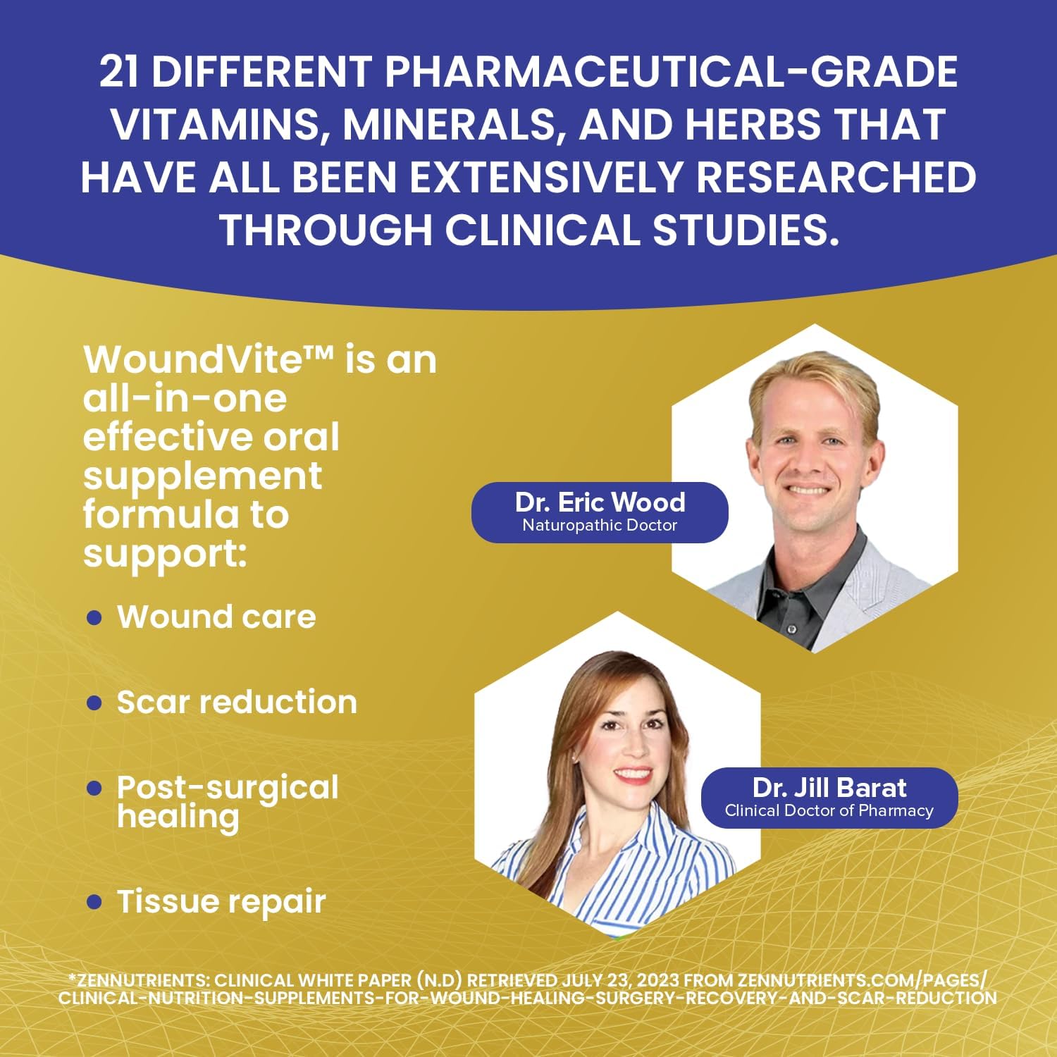 Zen Nutrients WoundVite Pre & Post Surgery Support, Scar & Wound Care, Scar Treatment, Plastic & General Surgery, Heal Faster & Aids in Recovery Time w/Bromelain, Turmeric & Arnica - 60 Vegan Caps