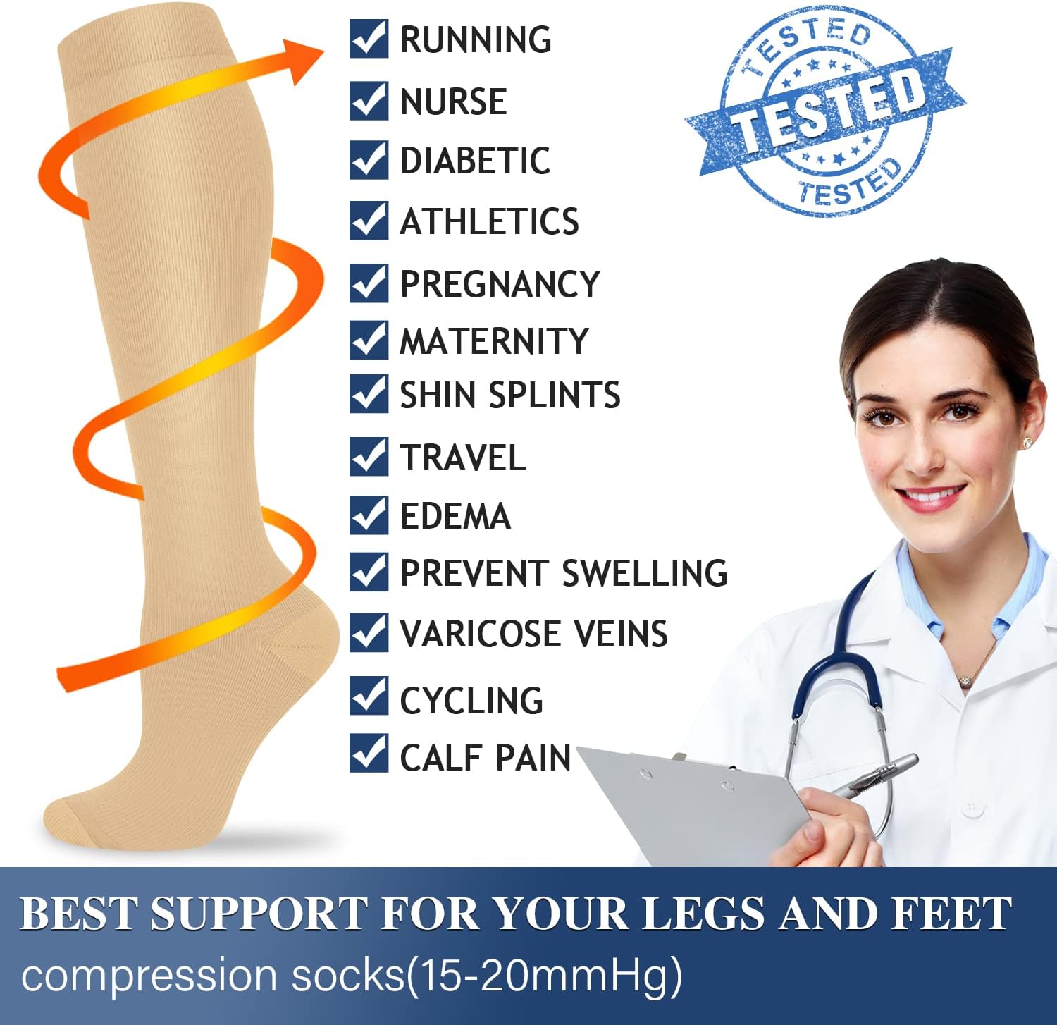 - Fit Just Right - Two size options available to pick from - US Shoe Size Men 6-13 | Women 6-15.5. Best Gift for women , nurses and doctors, athletes and runners, office workers, ok..can we just say whoever use their leg extensively. Our socks are universally suitable for you. Compression increases blood circulation which provides increased performance and faster recovery.