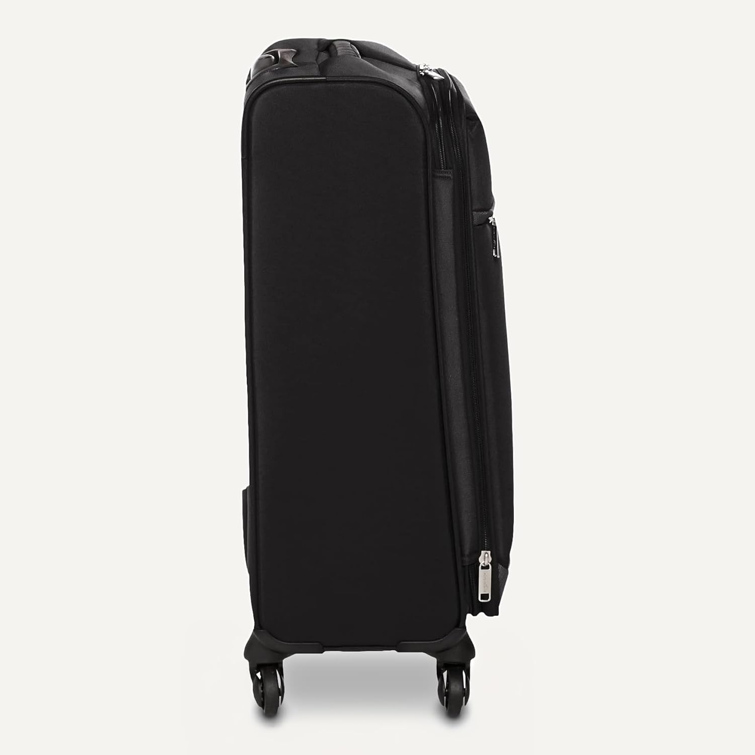 Amazon Basics Luggage, 23" Medium Checked Softside Suitcase With Wheels, With Four 360-Degree Multi-directional Spinner Wheels, Expandable Space, Zippered Pocket and Straps, Telescopic Handle, Black