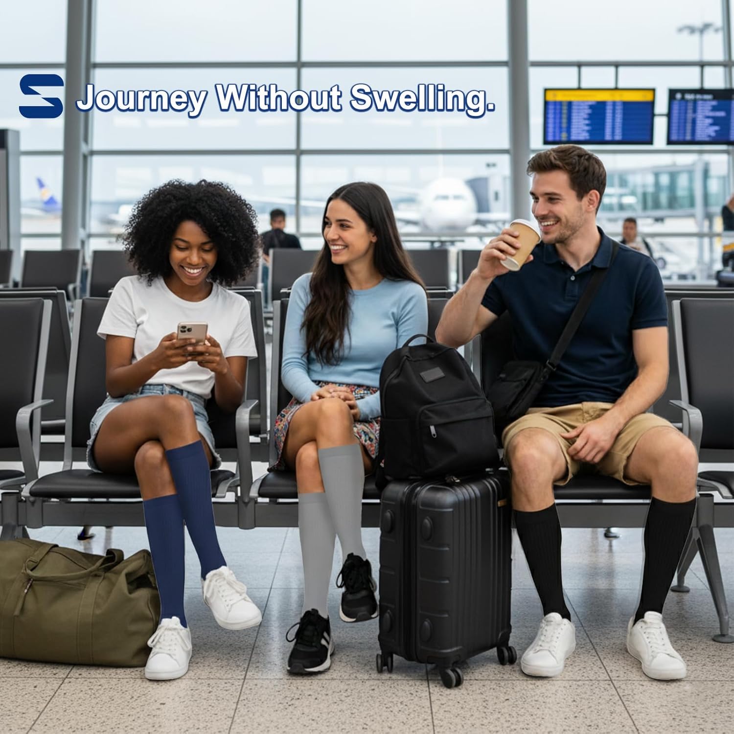 - Comfortable Design - Sooverki graduated compression socks for women and men circulation provide 15-20 mmHg of gradient compression, which are ergonomically designed. Prevention and relief of minor varicose veins, relief of tired aching legs, relief of minor swelling of feet and legs. The inner design of the socks is very soft and friendly to the toes. The material is breathable and comfortable, which can keep your feet dry.