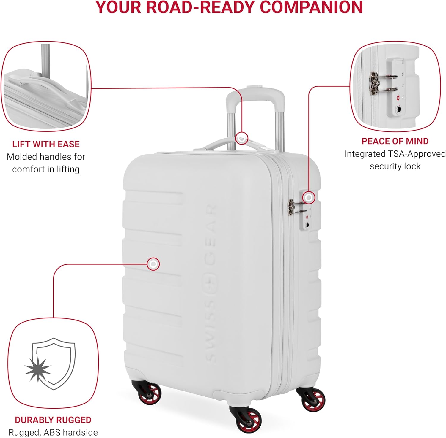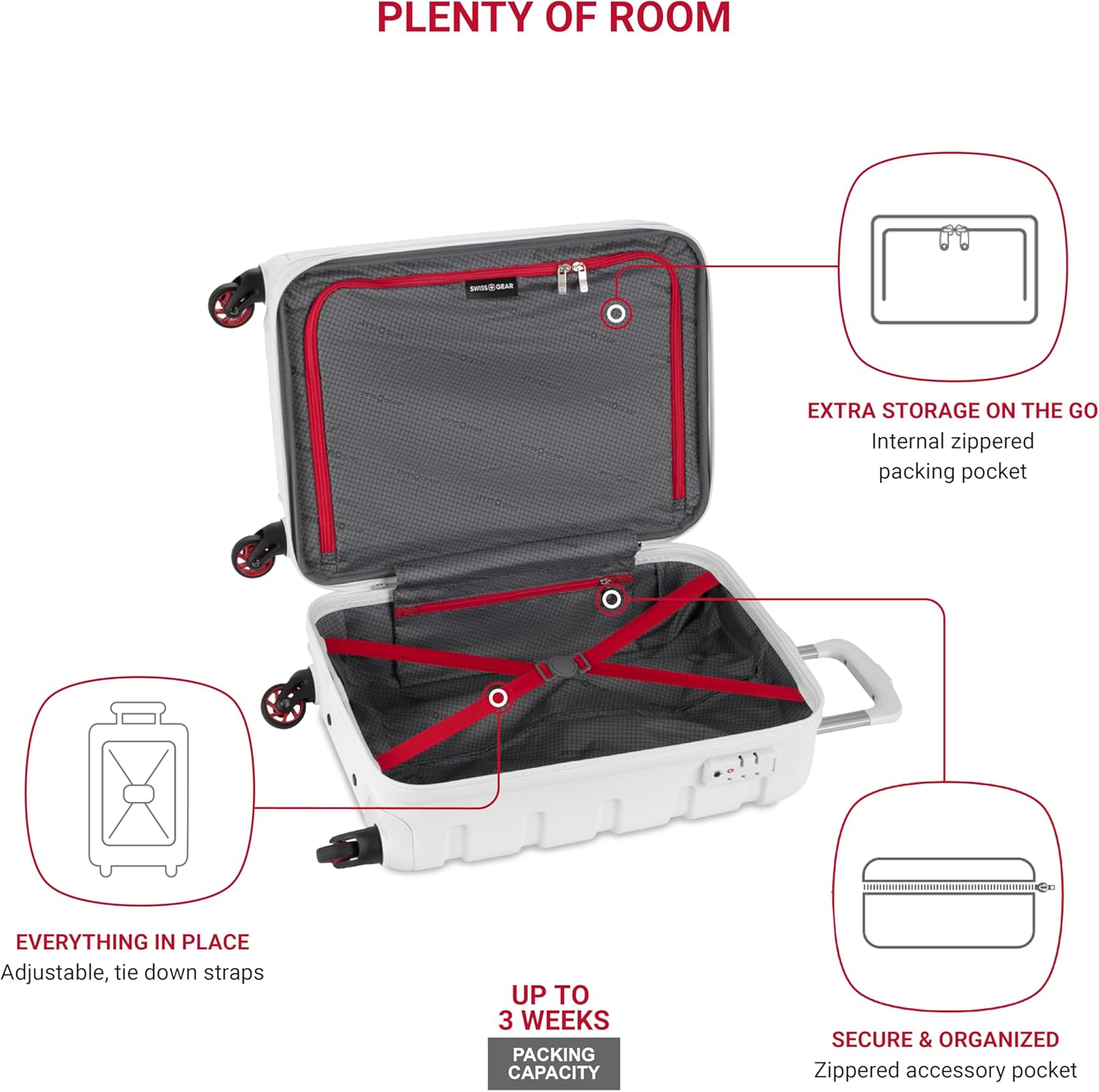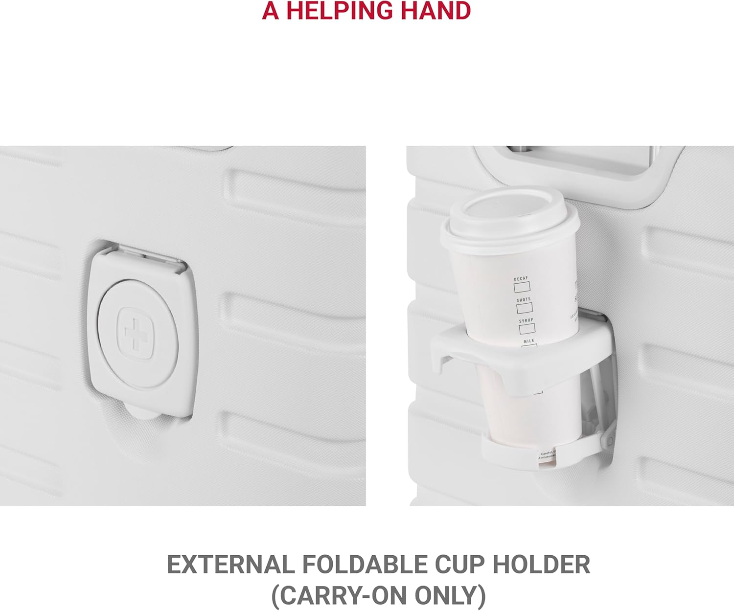 SwissGear 7366 Signature Hardside Expandable Luggage with Spinner Wheels, TSA Lock, Cup-Holder, White, Carry-On 19-Inch