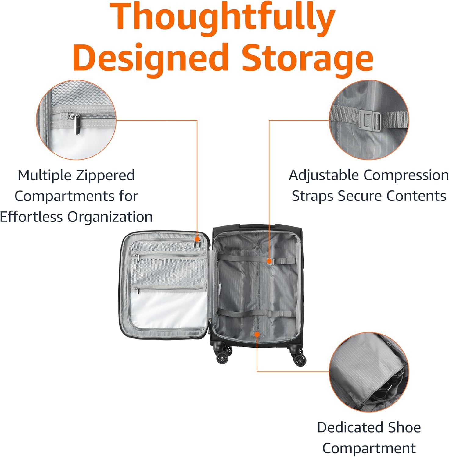 - COMPACT DIMENSIONS: With outer dimensions of 14.9 x 8.2 x 20.4 inches, this carry on luggage design offers ample storage while meeting most airline restrictions