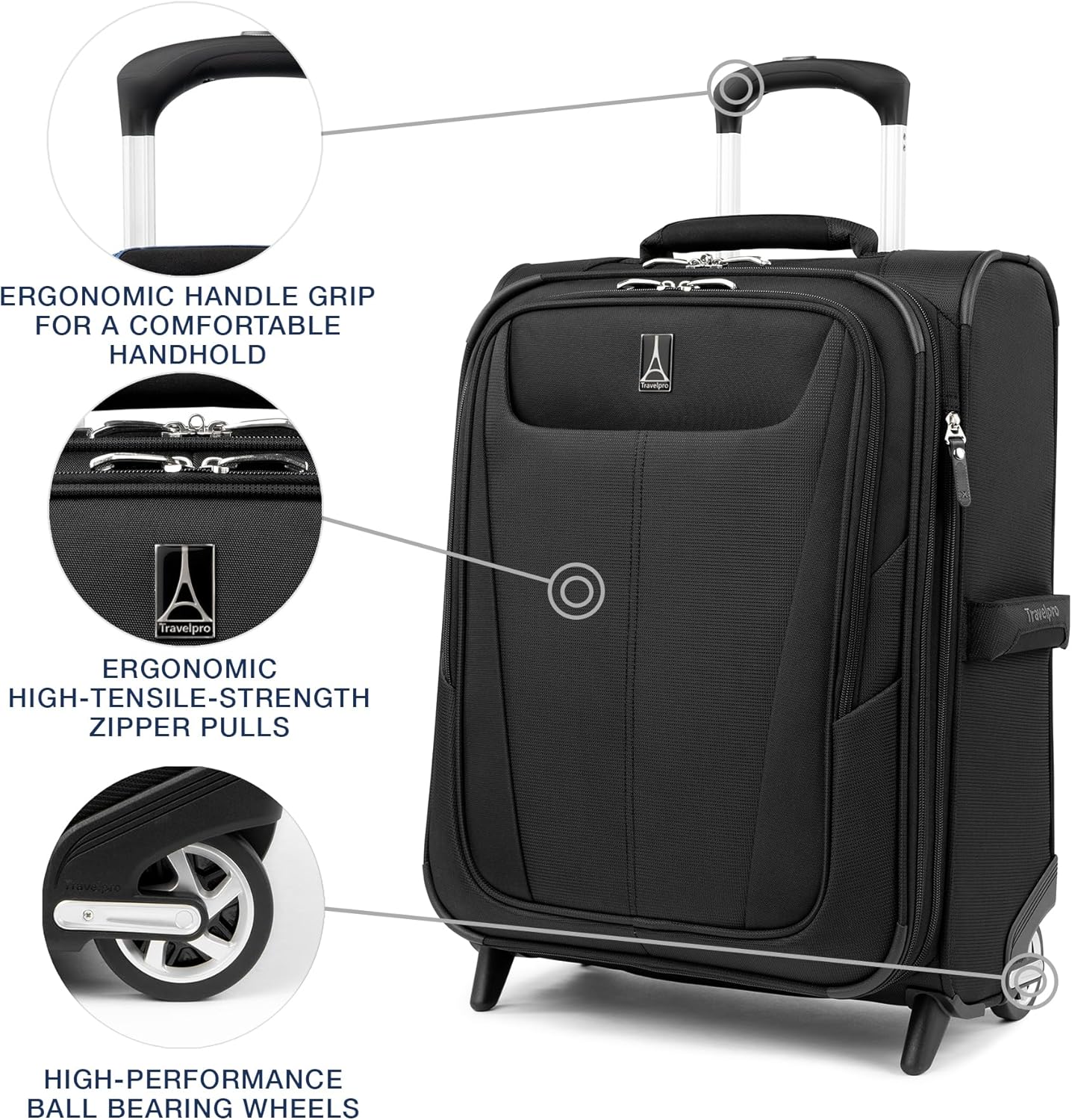 Travelpro Maxlite 5 Softside Expandable Upright 2 Wheel Carry-on Luggage, Lightweight, 20-Inch — Black