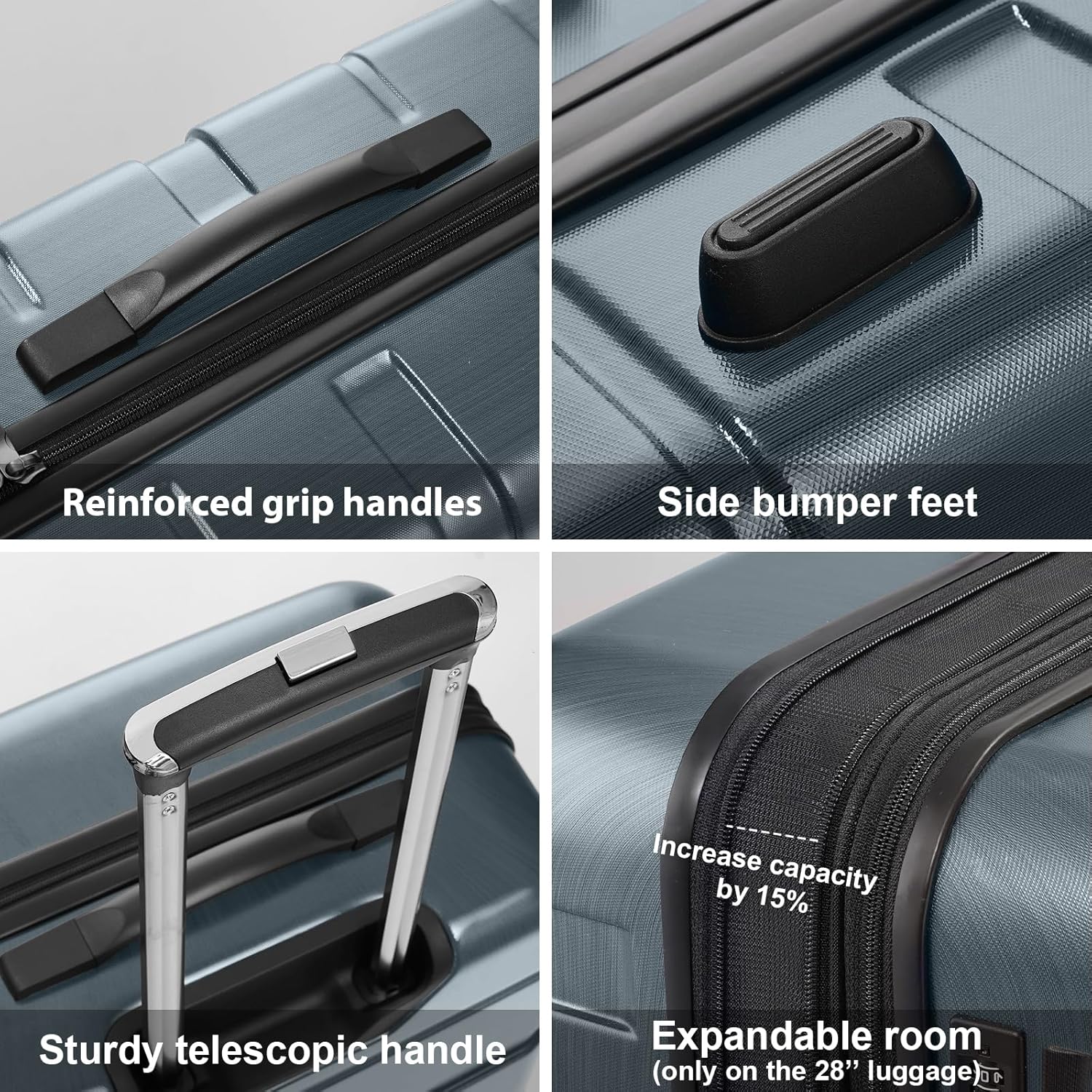 - Quiet airplane spinner wheels and an adjustable 3-level 100%pure aluminum telescoping handle allow you to quickly maneuver in tight spaces and it’s sturdier than most of the telescoping handle on the market.