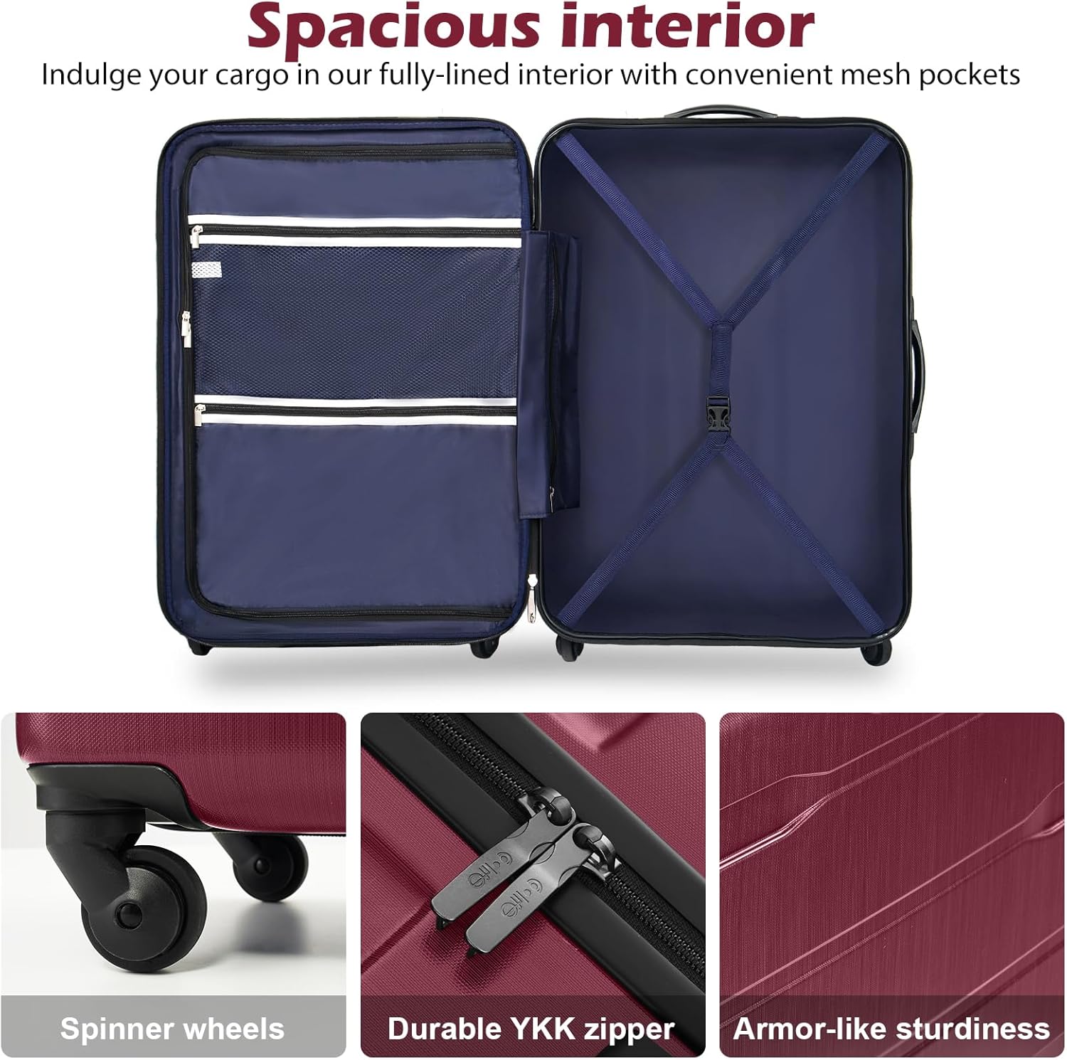- The suitcase benefits hugely from its ABS+PC hard plastic shell. it goes through insanely strict quality control test standards, creating strong and sturdy pieces that can withstand any forms of rough handling.Please note this luggage is sold separately, but If you intend to buy two or three suitcases, the small suitcase can be stored inside the bigger one