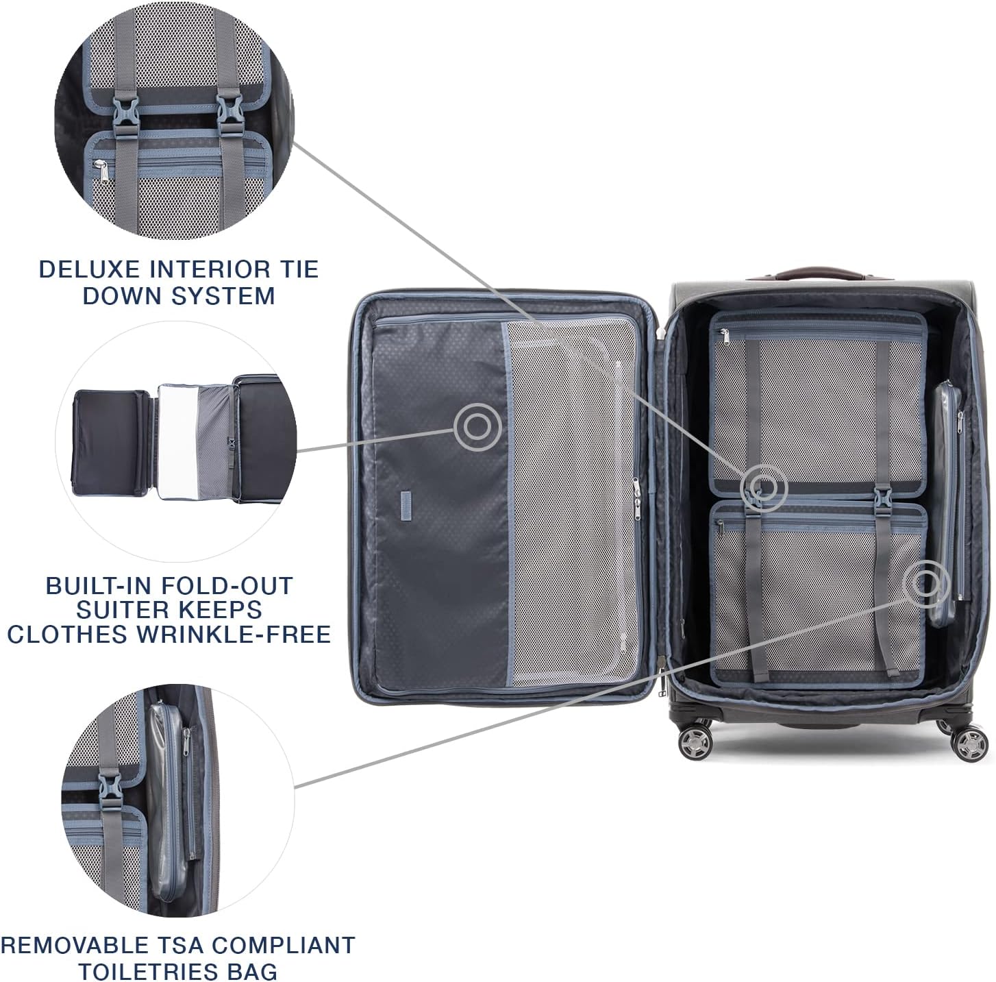 Travelpro Platinum Elite Softside Expandable Checked Luggage, 8 Wheel Spinner Large Suitcase, TSA Lock, Men and Women, Vintage Grey, Checked Large 29-Inch
