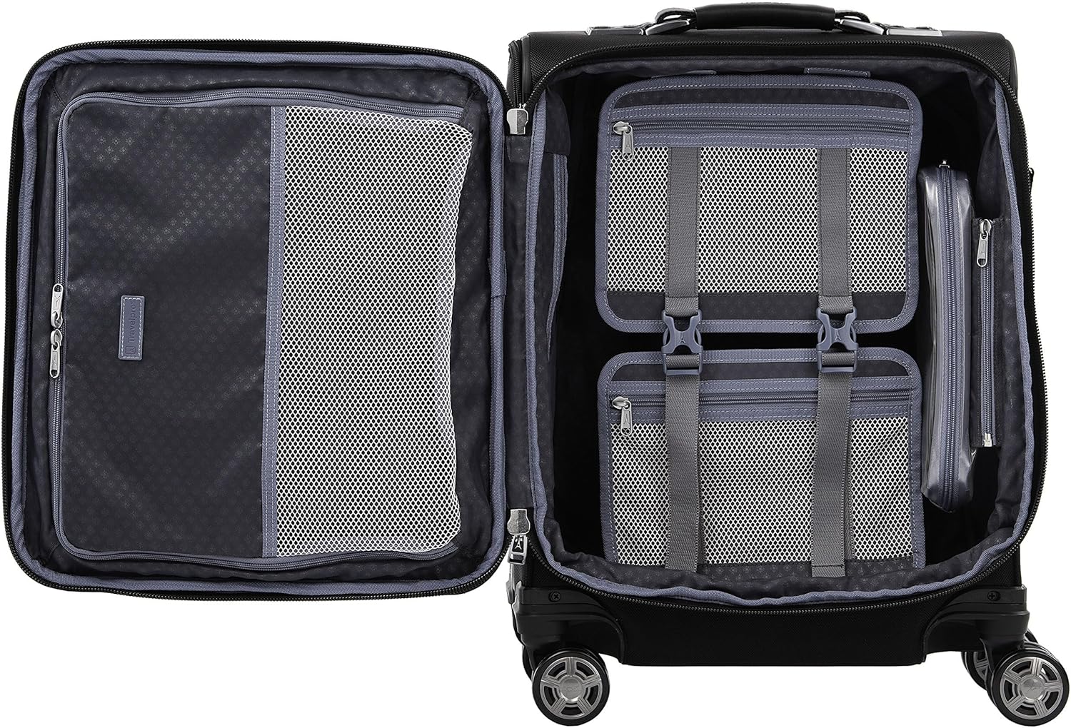 - EFFORTLESS MOBILITY: Patented Precision Glide System with magnetic self-aligning 360° dual spinner wheels, 4-stop PowerScope extension handle and non slip Contour Grip ensures stress free maneuverability. Top, side and bottom carry handles