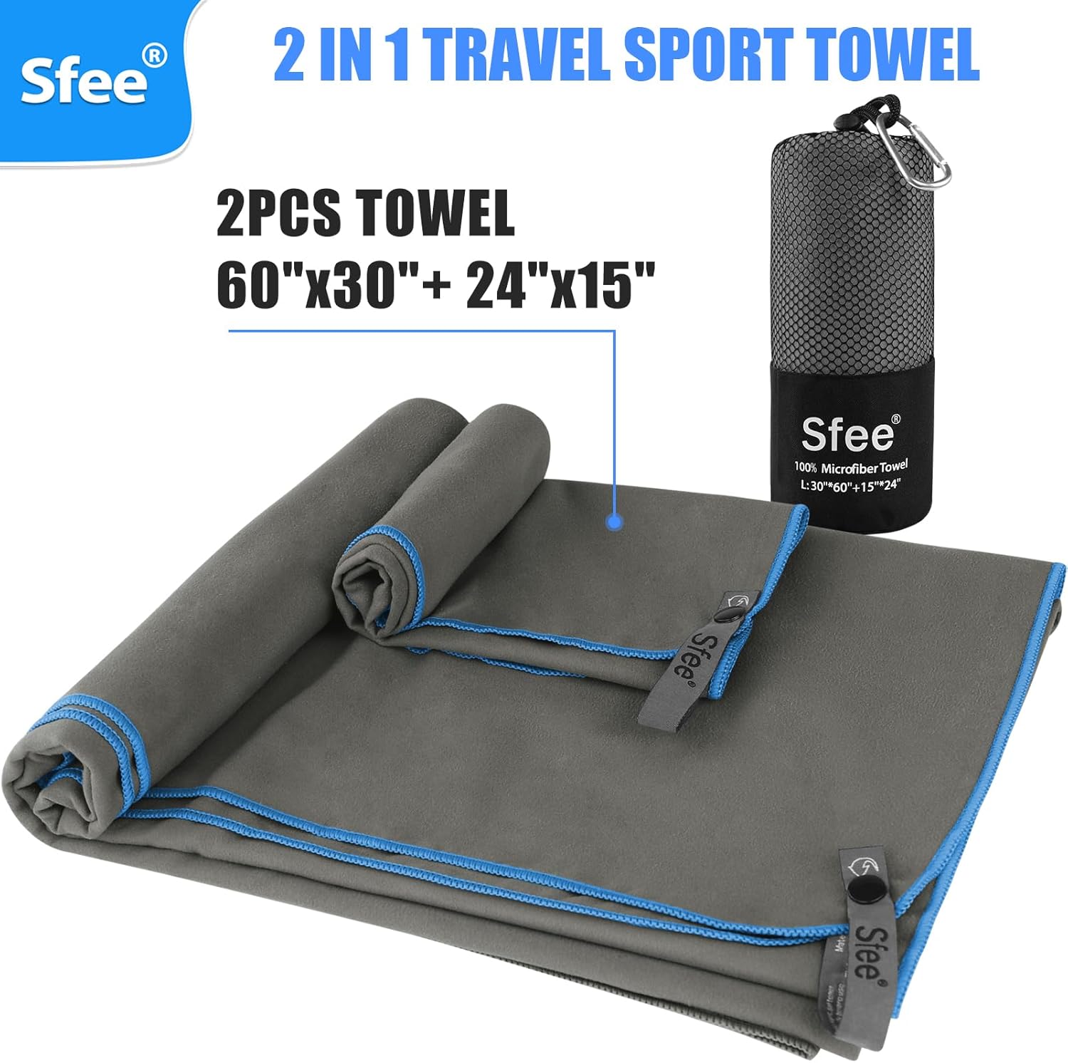 - Easy to Carry & Lightweight: Sfee quick dry beach towel made to save the space and to be more useful for traveling, professional travel, outdoor and beach side use. Our lightweight towel for travel are super space saving and easy to stuff it into your suitcase or backpack. Camping towel sets come with hanging loop for easy to carry. It is convenient hanging for quick dry anywhere without blew away.