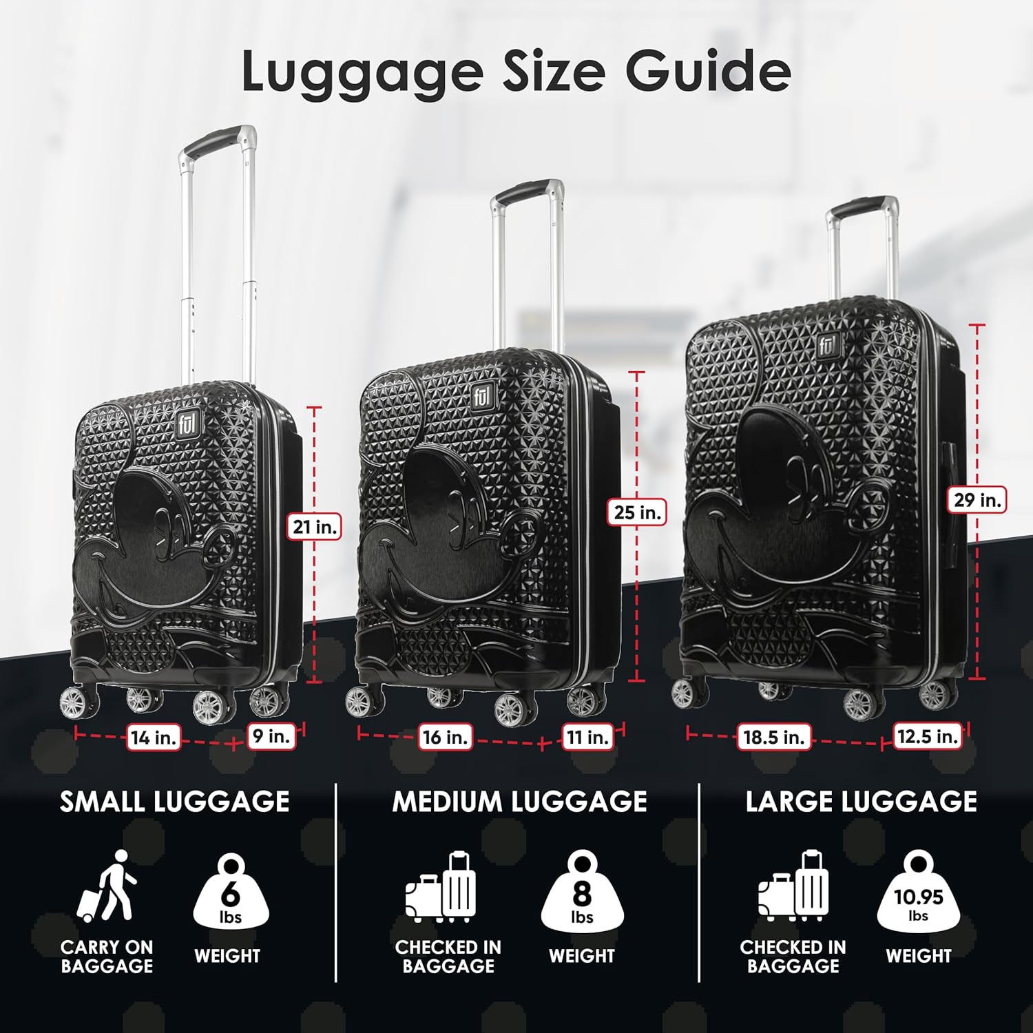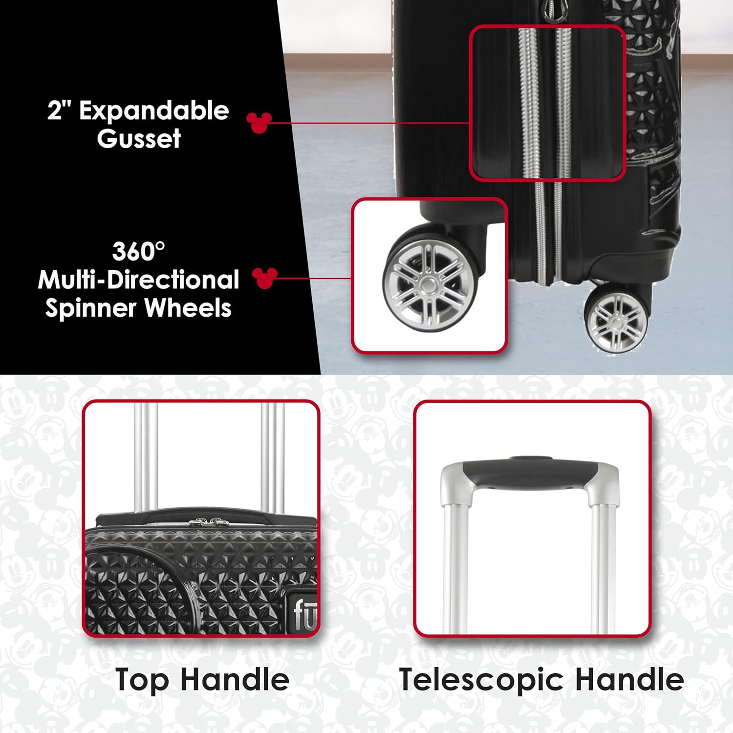 FUL Disney Mickey Mouse 21 Inch Carry On Luggage, Hardshell Rolling Suitcase with Spinner Wheels, Black