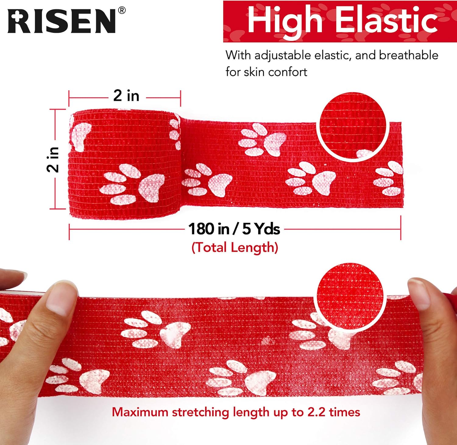 RISEN Cohesive Bandage 2” x 5 Yards, 6 Rolls, Self Adherent Wrap Medical Tape, Adhesive Flexible Breathable First Aid Gauze Ideal for Stretch Athletic