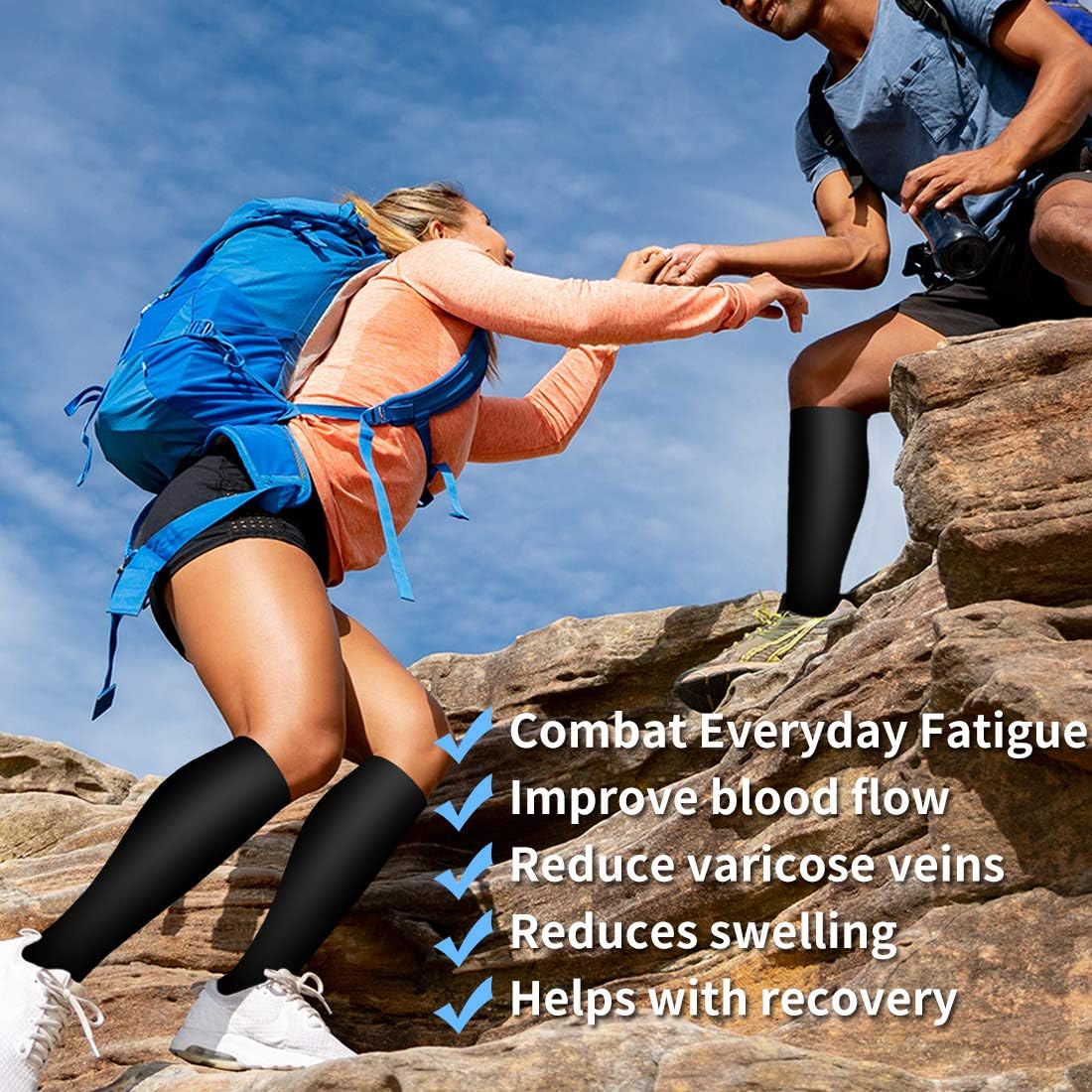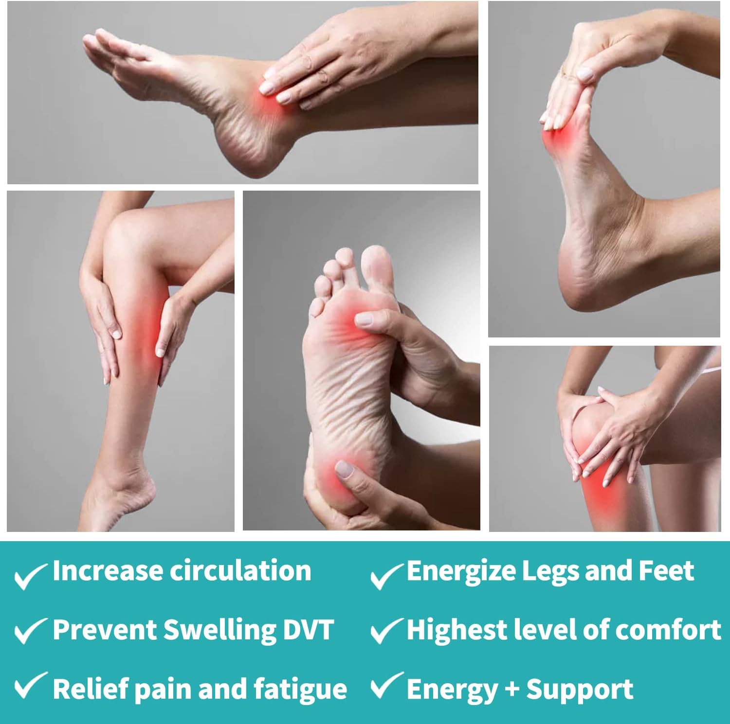 - Ture Graduated Compression-Graduated compression is the most effective form of compression, and works differently than regular compression socks. Work by creating a 'pressure gradient' which helps to push oxygen-poor blood out of the feet and legs, and back to the heart. This improves circulation, boost energy levels, and relieves symptoms such as aches and pains, throbbing, swelling, blood pooling, provides the renewable and sustained energy and allows you to heal in the legs and feet.