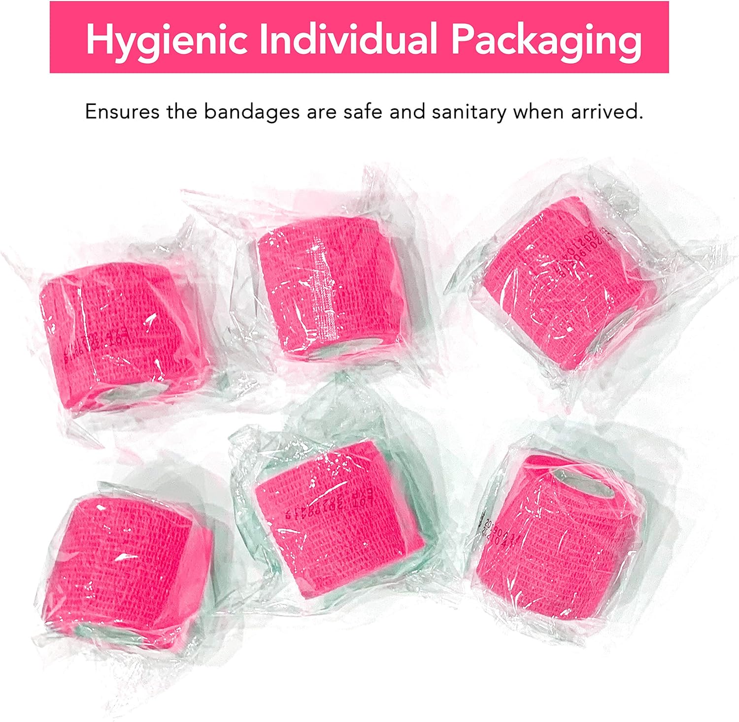 RISEN Cohesive Bandage 2” x 5 Yards, 6 Rolls, Self Adherent Wrap Medical Tape, Adhesive Flexible Breathable First Aid Gauze Ideal for Stretch Athletic