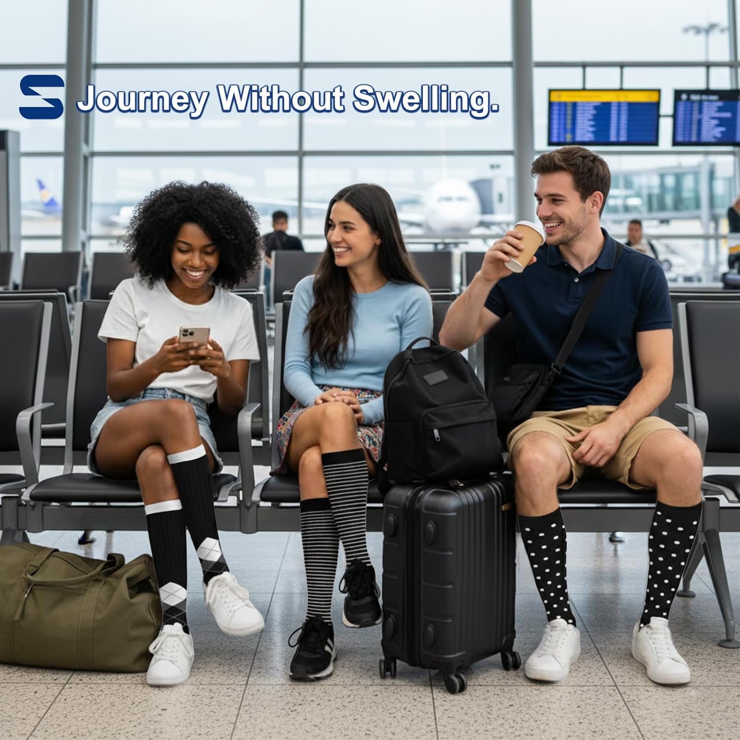 - Comfortable Design - Sooverki graduated compression socks for women and men circulation provide 15-20 mmHg of gradient compression, which are ergonomically designed. Prevention and relief of minor varicose veins, relief of tired aching legs, relief of minor swelling of feet and legs. The inner design of the socks is very soft and friendly to the toes. The material is breathable and comfortable, which can keep your feet dry.