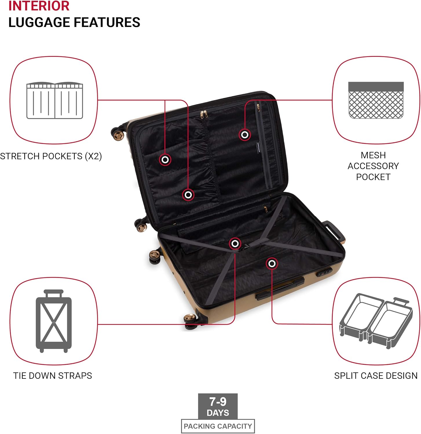 - 10-Year Limited Warranty: SwissGear products are tested to ensure our products meet stringent standards; Our hard suitcases with wheels come with a 10-year warranty against defects