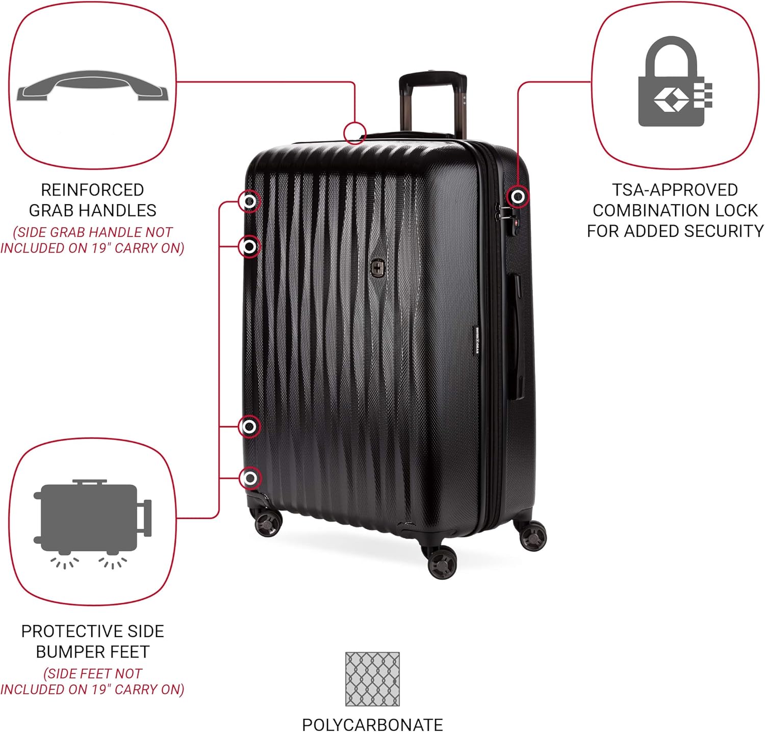 - 10-Year Limited Warranty: SwissGear products are tested to ensure our products meet stringent standards; Our hard suitcases with wheels come with a 10-year warranty against defects