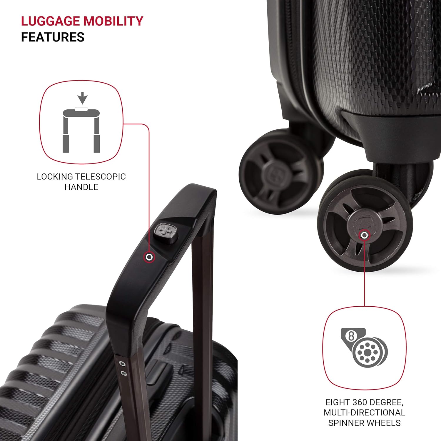 - 10-Year Limited Warranty: SwissGear products are tested to ensure our products meet stringent standards; Our hard suitcases with wheels come with a 10-year warranty against defects