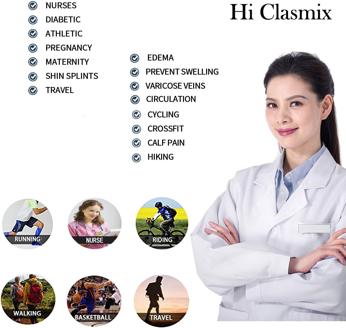 - ✅PHYSICIAN DESIGNED HIGHEST QUALITY KNEE HIGH COMPRESSION SOCKS – Our compression socks are recommended by doctors and preferred by trainers. The reinforced/cushioned heel and toe support provide unmatched comfort. We carefully designed and manufactured our compression socks to provide premium support, comfort, and relief without compromising your mobility. Form fitting, lightweight, and breathable fabric features maintain joint stability regardless of activity.