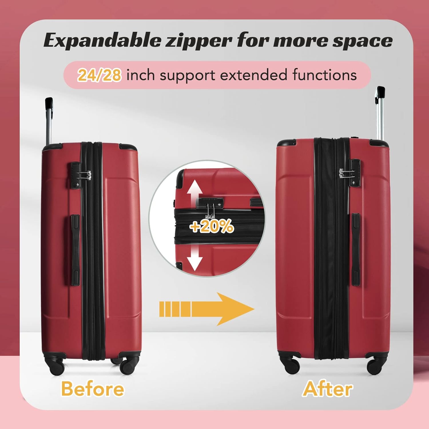 - 20 Inch Carry On, 24 Inch Checked-Medium and 28 Inch Checked-Large luggage can be neatly stored each inside the other. To comply with common carry-on size restrictions, the 20-inch suitcase is non-expandable and does not have side handles.