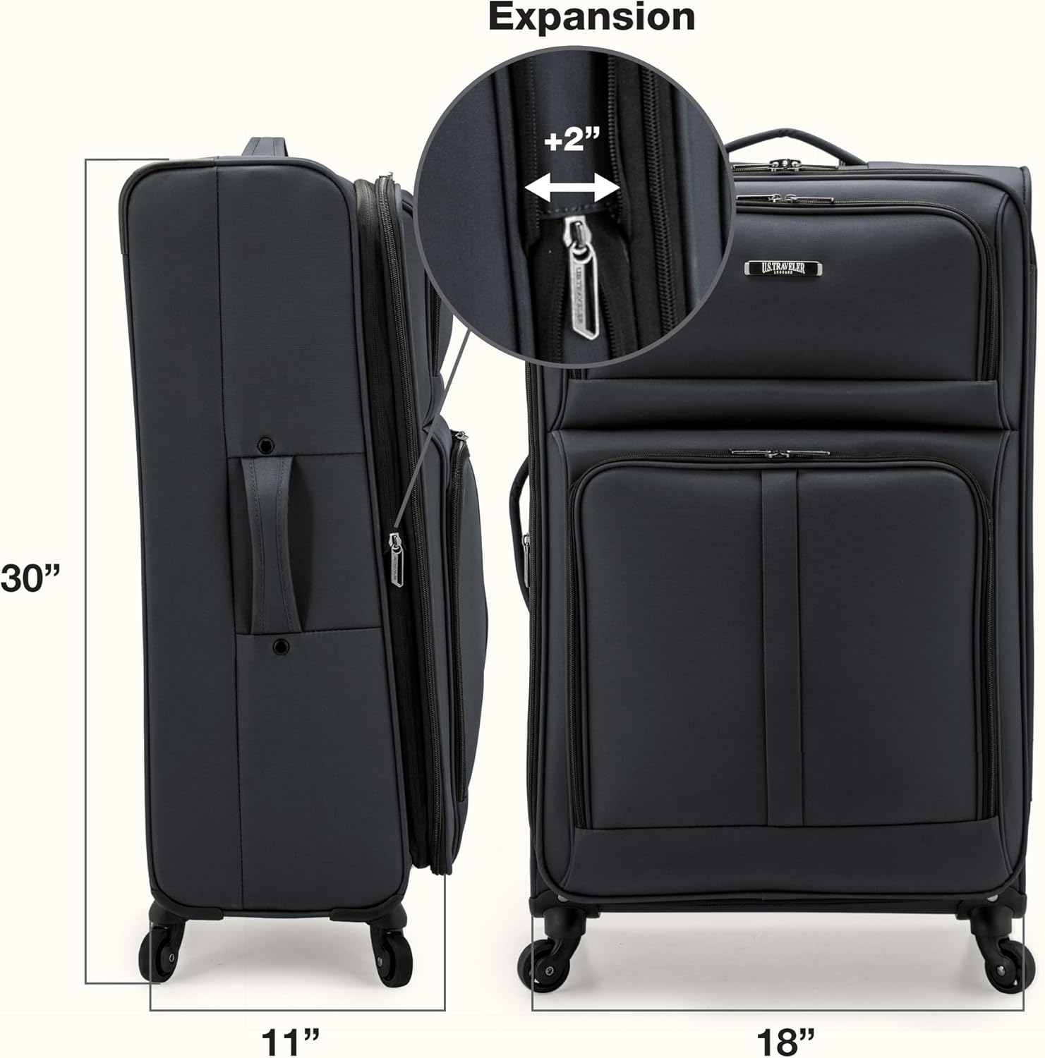 U.S. Traveler Anzio Softside Sturdy Ballistic Nylon Expandable Travel Suitcase Luggage with 4 Spinner Wheels, Dark Grey, Checked-Large 30-Inch