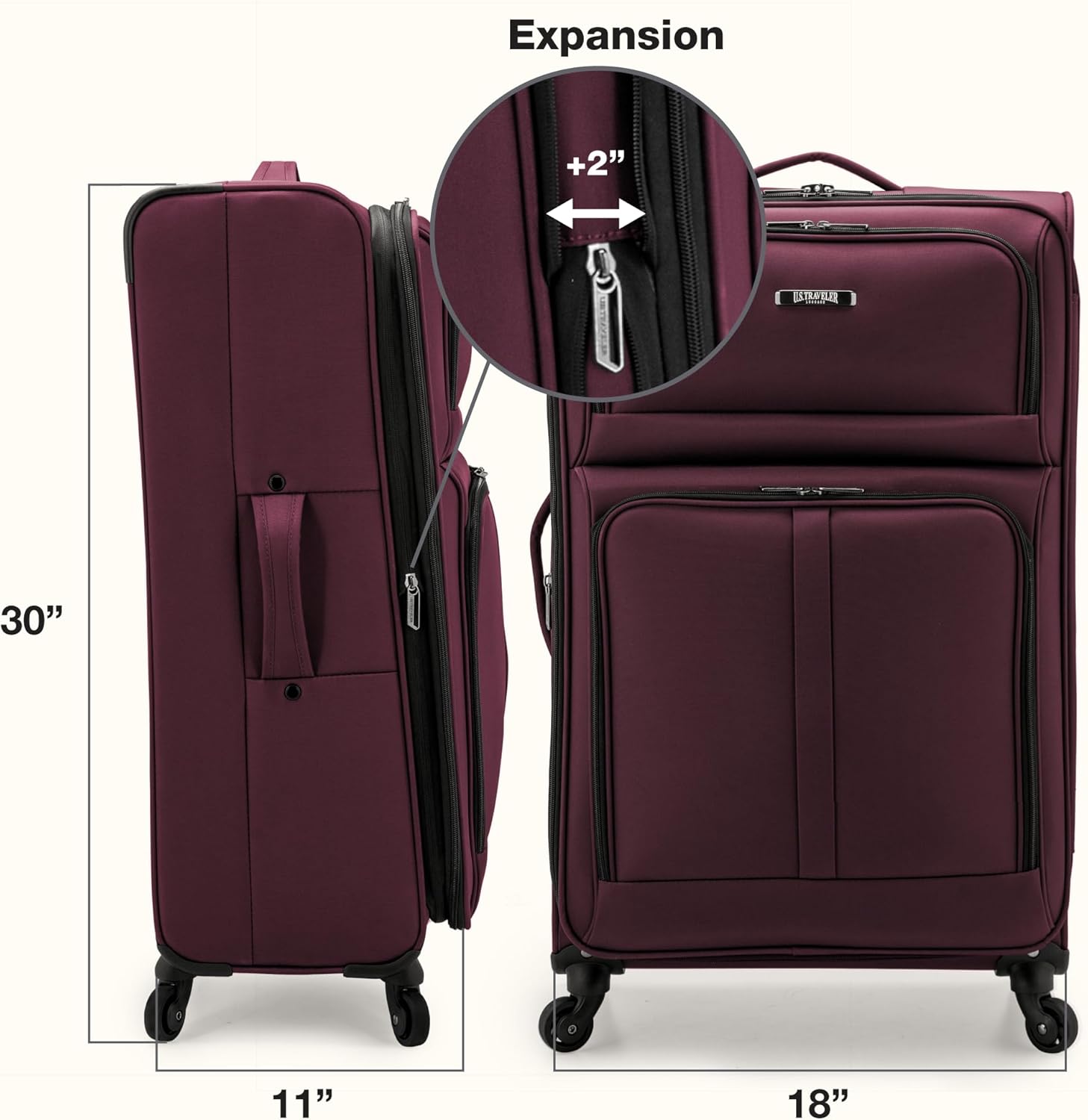 U.S. Traveler Anzio Softside Sturdy Ballistic Nylon Expandable Travel Suitcase Luggage with 4 Spinner Wheels Burgundy, Checked-Large 30-Inch