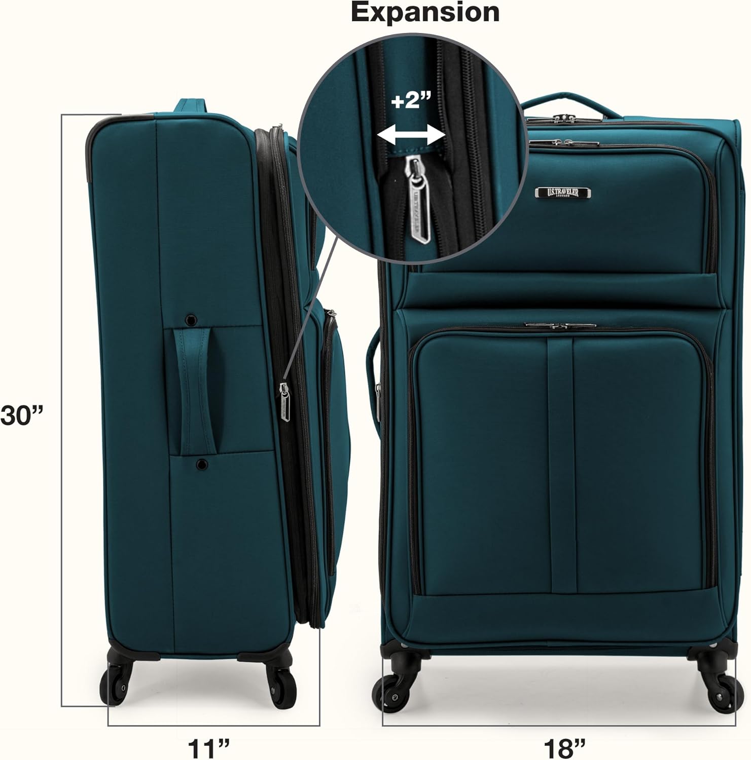 - Dimensions of 30" H x 18" W x 11" (+2") D Exp and interior dimensions of 27" H x 17.5" W x 10.5" (+2") D Exp, this spinner is the perfect size for all your travel needs. And at just 8.65 lbs, it's lightweight enough to take with you wherever you go.
