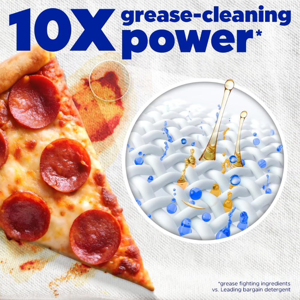 - TOUGH ON STAINS: Tide’s laundry soap works on 100% of common stains plus has 10X the grease fighting ingredients versus leading bargain detergent. Don't settle for "almost clean", get Boosted clean with Tide laundry detergent, every load, every time