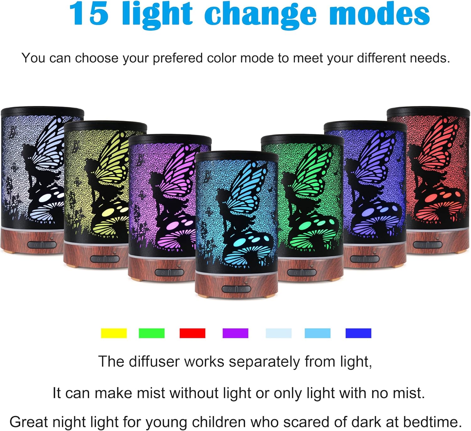 Essential Oil Diffuser, Ultrasonic Diffuser for Essential Oil, Cool Mist Humidifier Aromatherapy Diffuser with 7 Color Lighting Changing Modes, Waterless Auto Shut-Off for Home(Flower Fairy)