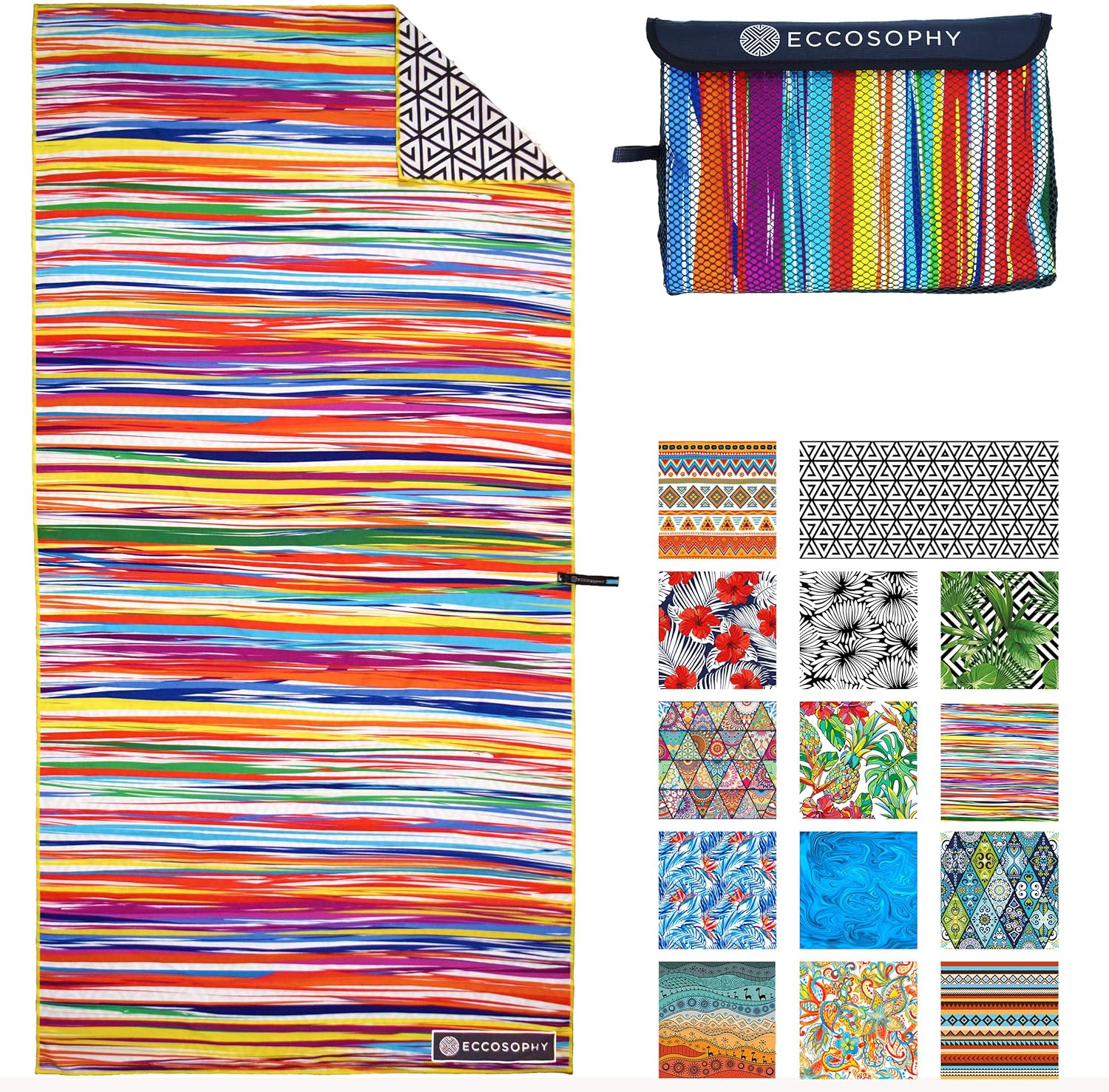 ECCOSOPHY Microfiber Beach Towel - Sand Free Towels are Quick Dry, Light Weight, Super Absorbent - Perfect Pool, Travel, Cruise, Camping Essentials - Oversized Extra Large for Adults 71x35 in