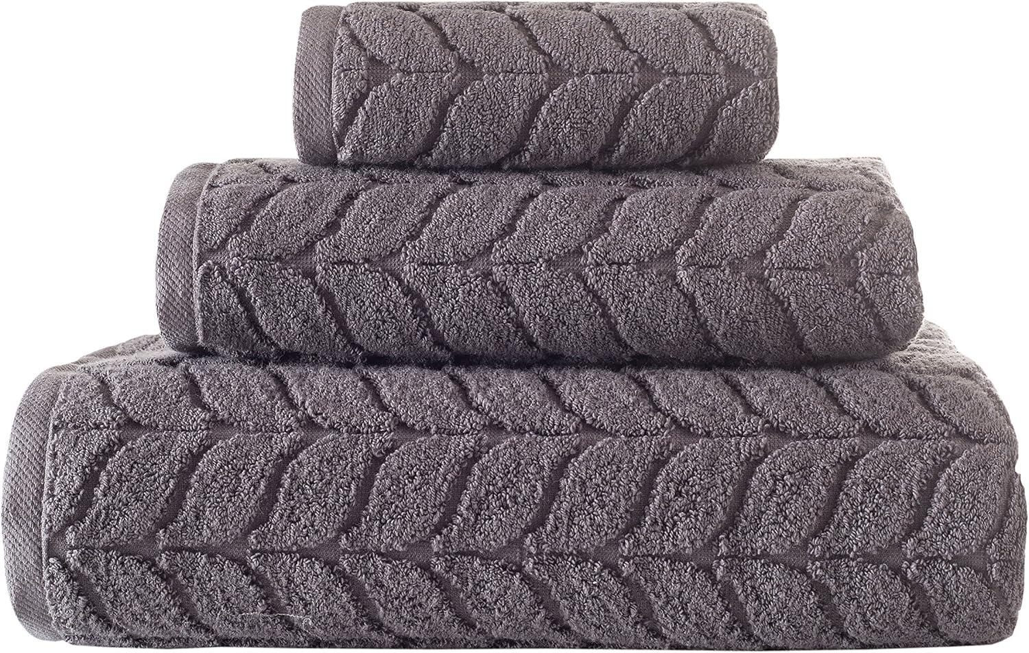 BAGNO MILANO Turkish Bath Towels, Soft Plush Jacquard Luxury Bath Towels, Quick Dry Towel Set (Grey, 3 pcs Towel Set)