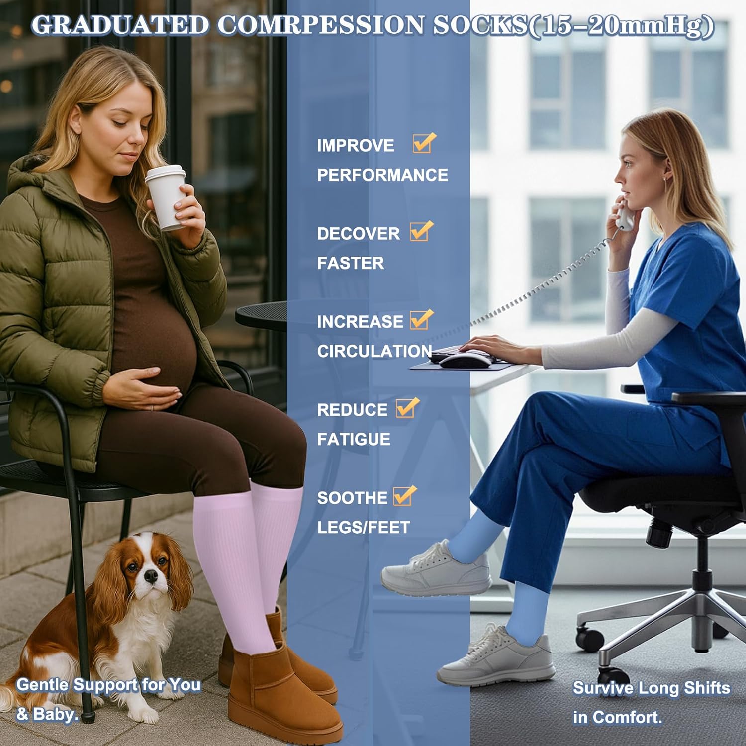 • Comfortable Design - Sooverki graduated compression socks for women and men circulation provide 15-20 mmHg of gradient compression, which are ergonomically designed. Prevention and relief of minor varicose veins, relief of tired aching legs, relief of minor swelling of feet and legs. The inner design of the socks is very soft and friendly to the toes. The material is breathable and comfortable, which can keep your feet dry.