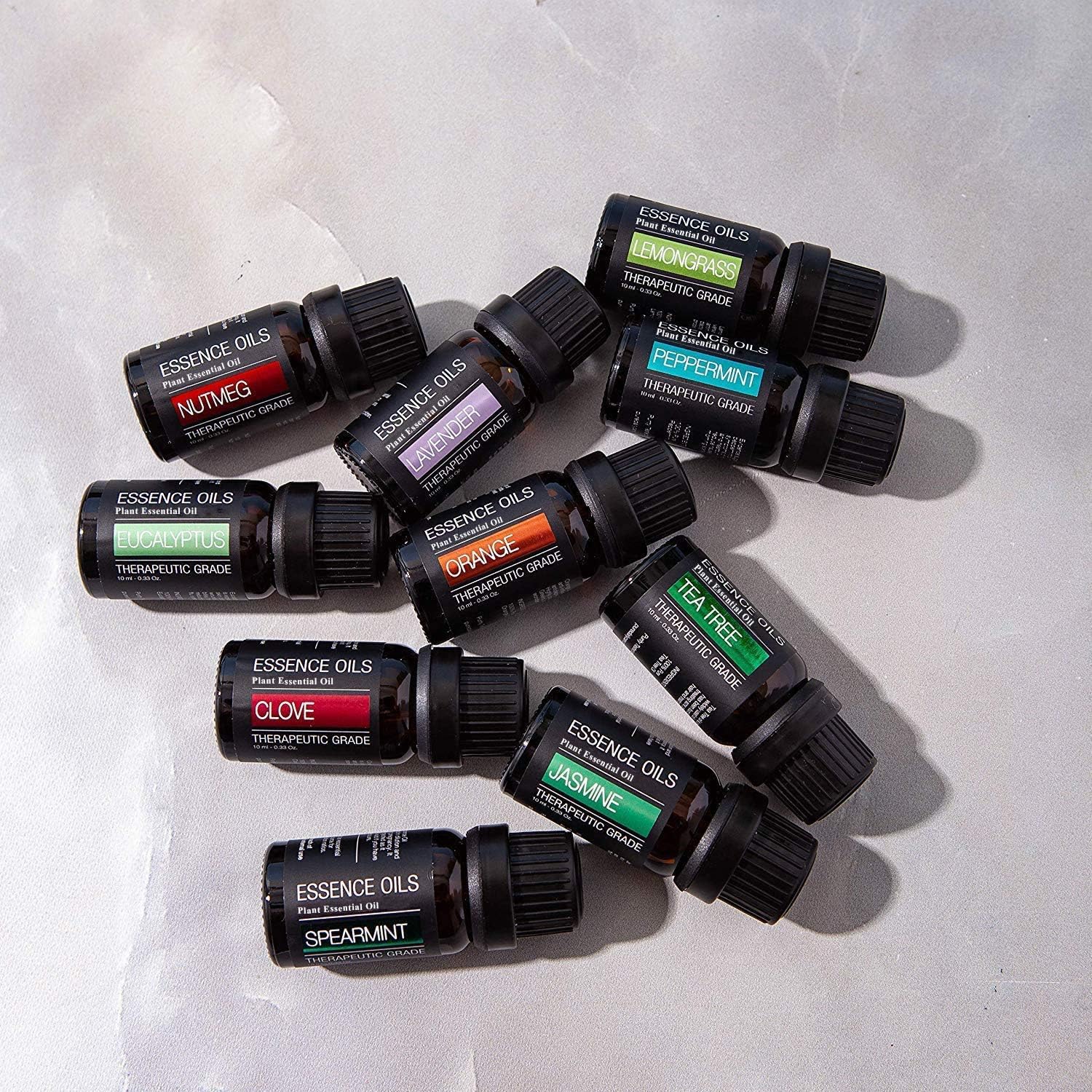 - 10 Essential Plant Oils - Our Top 10 essential oils include lavender, eucalyptus, tea tree, orange, peppermint, lemongrass, jasmine, nutmeg, clove, and spearmint oils. All oils are therapeutic grade come in amber 10ml jars to protect from sun degradation