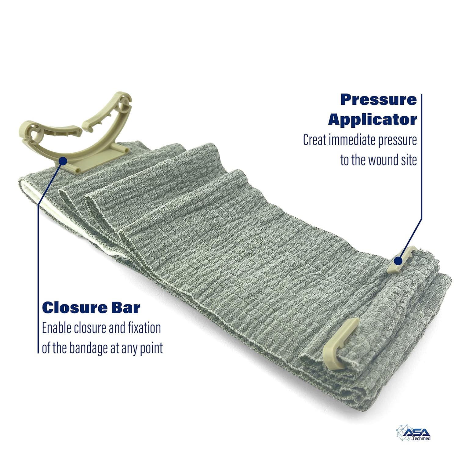 - MULTIFUNCTIONAL FIRST AID DEVICE: The Israeli compression bandage can be applied to multiple parts of the body including: arms, legs, torso, head, and anywhere else. You can even use this bandage as rings, splints, and a simple tourniquet in an emergency. It exceeds the design of a general first aid bandage. The pressure-integrated device is equivalent to a small emergency system. It is widely used by the military, first responders, EMS, law enforcement, commercial and industrial sites.