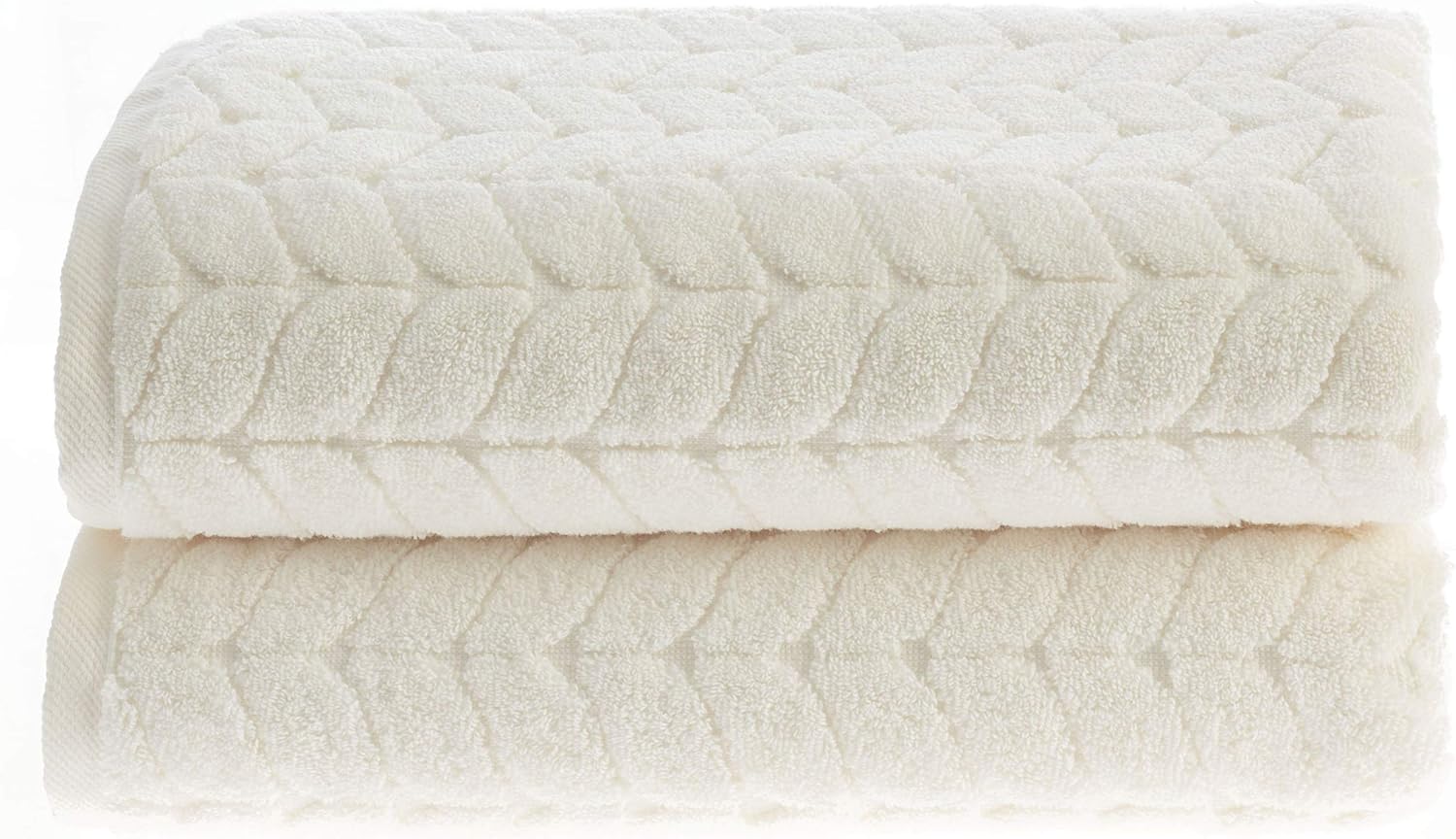 BAGNO MILANO Turkish Bath Towels, Soft Plush Jacquard Luxury Bath Towels, Quick Dry Towel Set (Cream, 2 pcs Bath Towel Set)