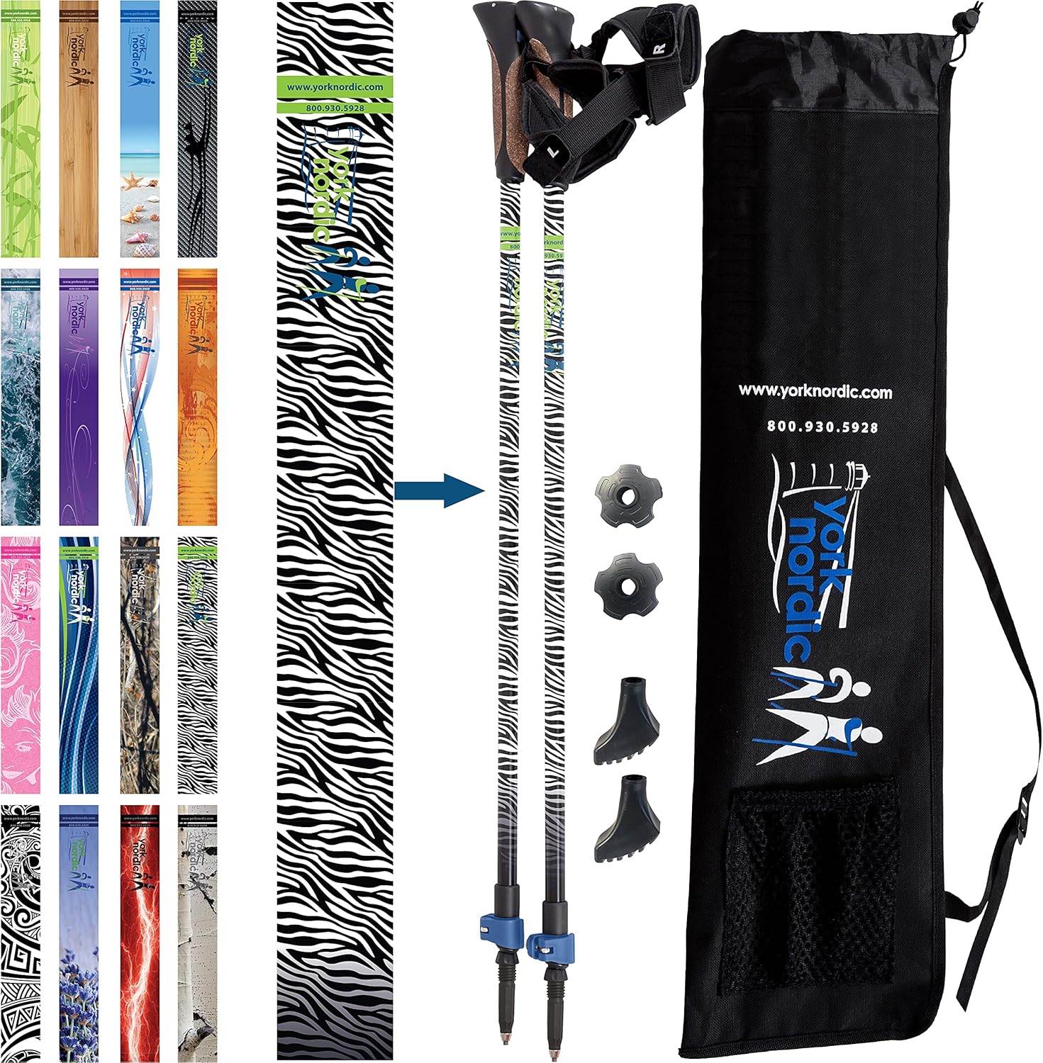 Official Nordic Walking Poles - True Classic Nordic Glove Grips, Lightweight, Adjustable, and Collapsible -2 Pieces w/flip Locks, Detachable Feet and Travel Bag by York Nordic - Heights 5'4"-6'2"