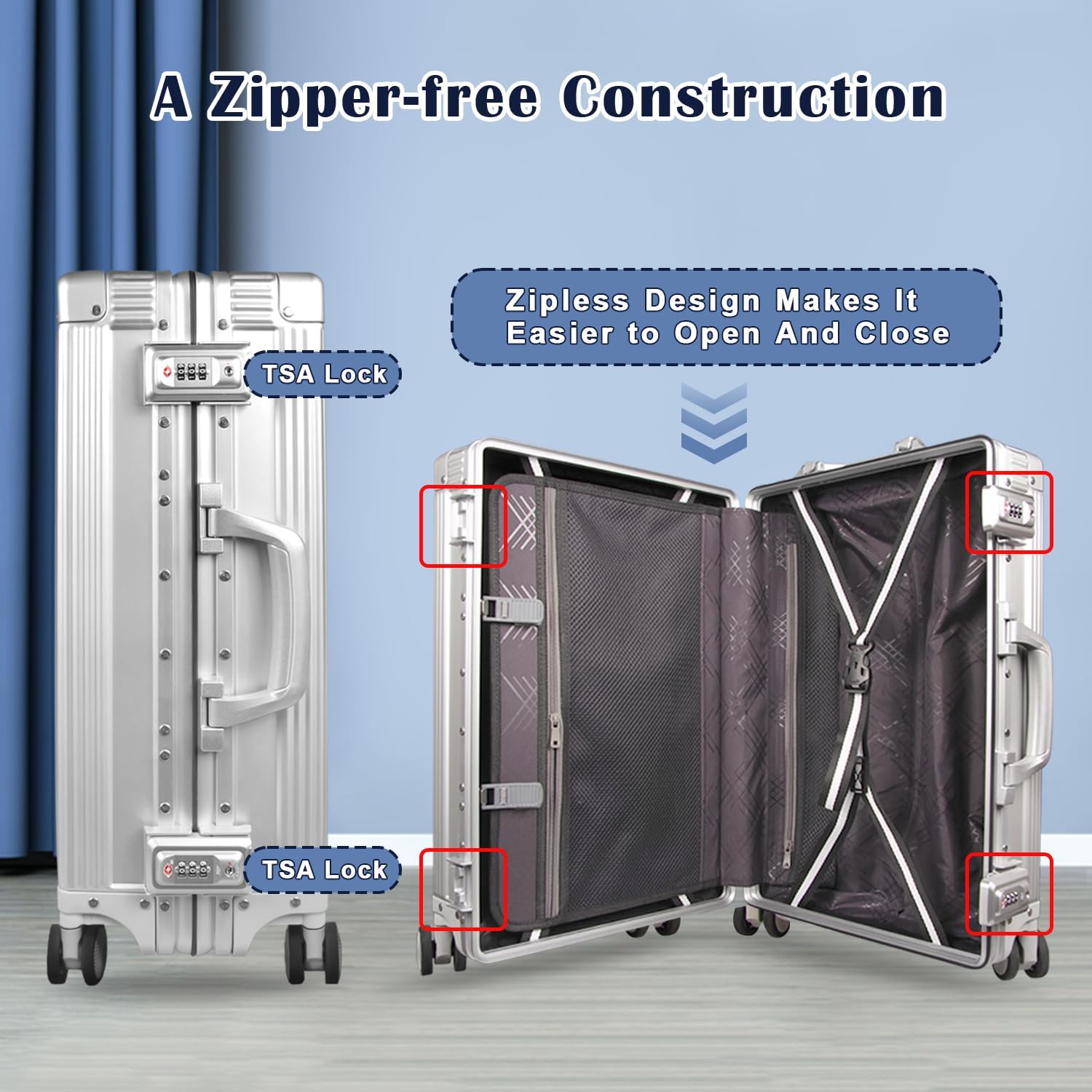 - 【Safety And Convenient TSA Lock 】: Equipped with 2 combination locks, which can give you peace of mind when traveling because you can ensure your belongs are secure. Its aluminum hard shell enables a zipper-free construction, while the lock in combination added security. Different from traditional zipper styles, the lock effortlessly unlocks just need a simple push. The luggage can easily be inspected by airport security.