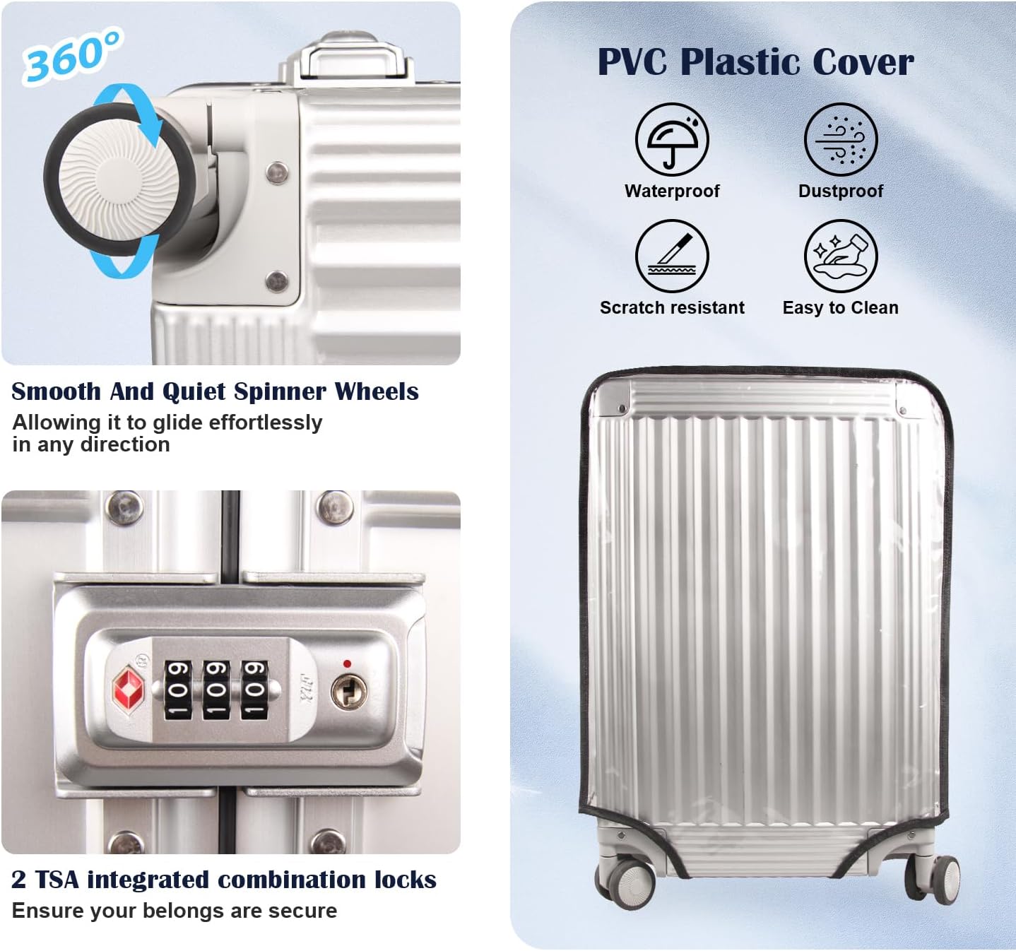 - 【Shiny And Sturdy Suitcase】: This Dominox luggage features a sleek and modern look with its aluminum hard side shell in a stylish silver color. The aluminum construction not only adds to the aesthetic appeal but also provides excellent durability and protection for your belongings. Vertical grain look makes it very high-end.