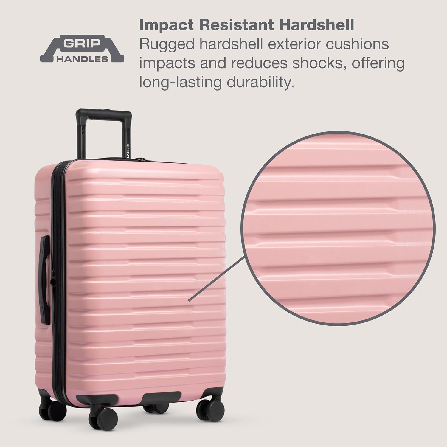 U.S. Traveler Boren Hardside Spinner Luggage With Aluminum Handle, Pink, Checked-Large 30-Inch