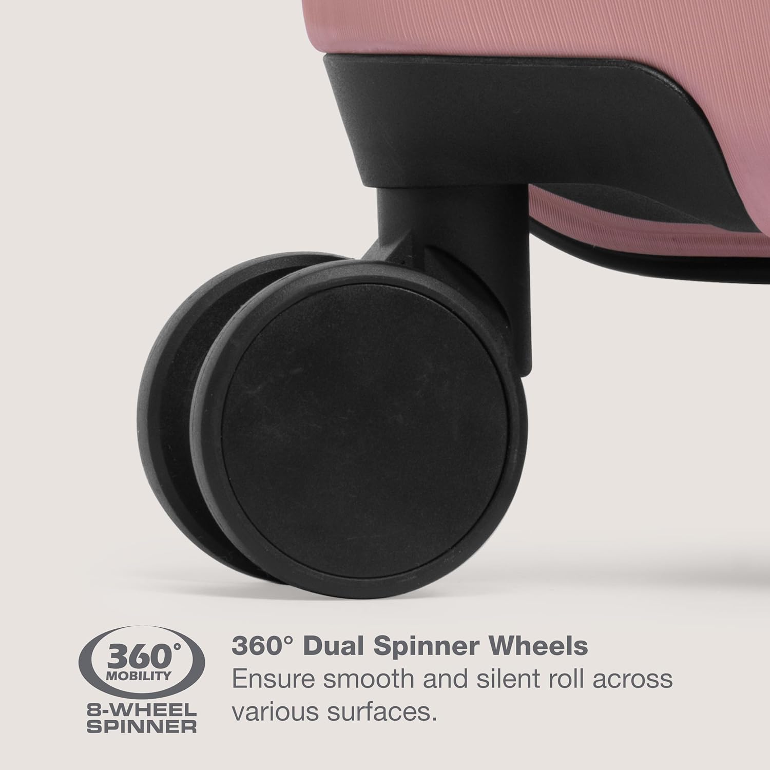 - 360-degree spinner wheels allow smooth and effortless mobility. Recessed handle and wheels to maximize the carrying capacity while meeting FFA size requirements.