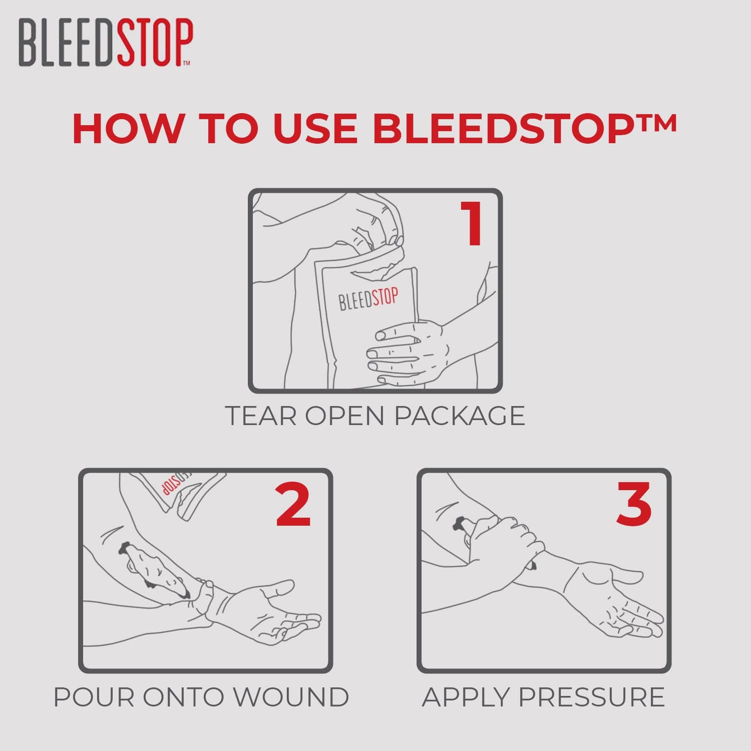 - HOW TO USE: Simply pour a layer thick enough to cover the entire surface of the wound/laceration before applying firm pressure over the bleeding site using sterile gauze or bandage. BleedStop powder is safe on to leave it on the wound, so it's not necessary to wash it off before bandaging. Please seek emergency medical treatment if bleeding doesn't stop after a prolonged period of time.