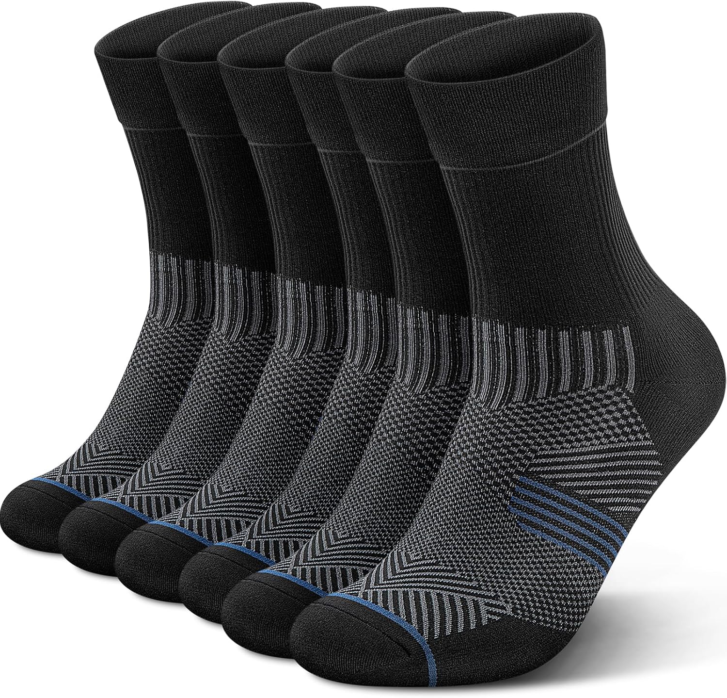 - ARCH SUPPORT & BREATHABLE: Targeted arch compression keeps your arch stable and secure, preventing socks movement and reducing injury during exercise. Our mens running socks increase air permeability through mesh knitting technology, helping your feet keep cool and breathable all day long