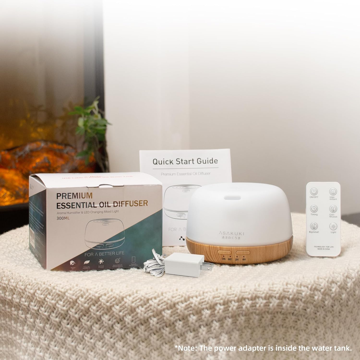 ASAKUKI Essential Oil Diffuser, 300ml Ultrasonic Aromatherapy Oil Humidifier with 7 Colors Lights 2 Mist Mode for Home